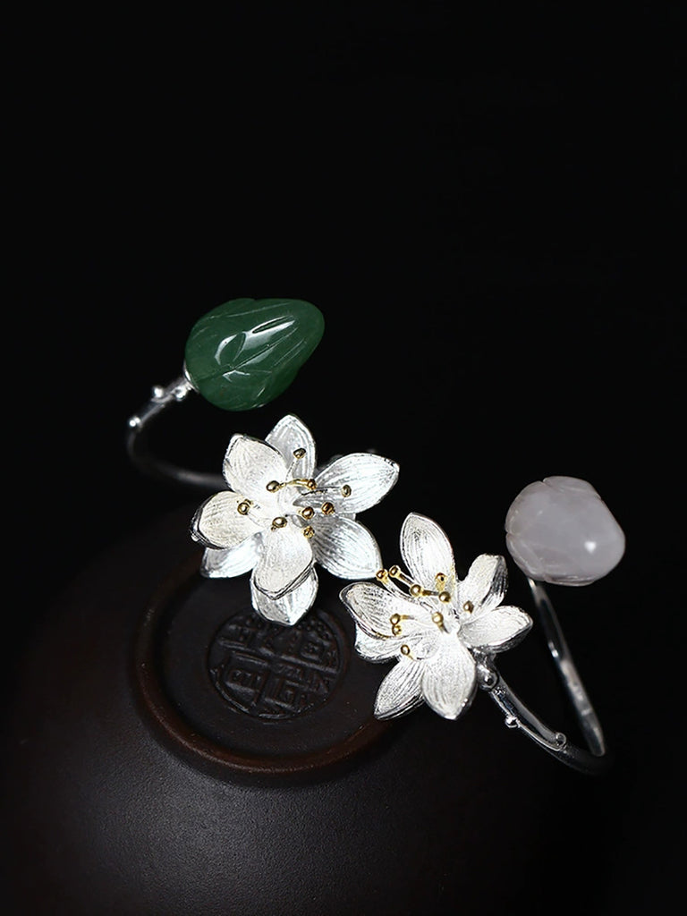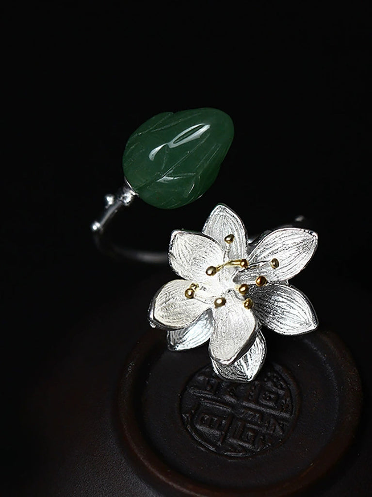 Women S925Silver Lotus Jade Adjustable Ring