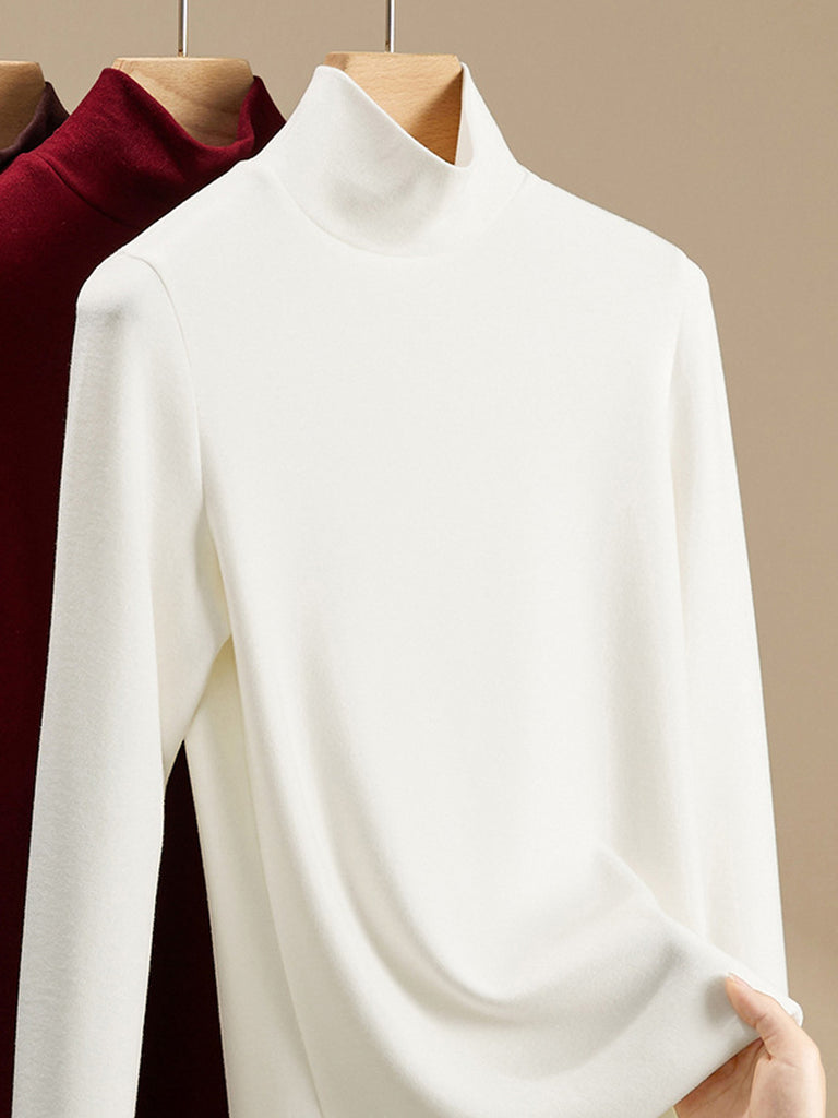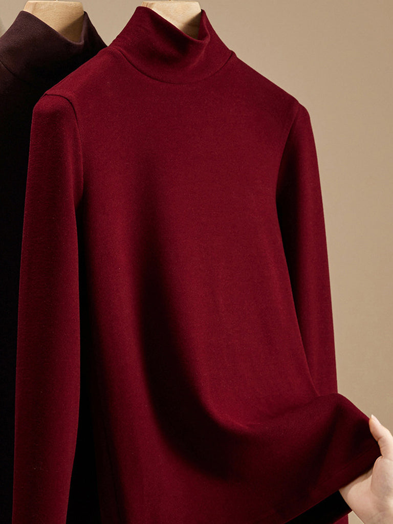 Women Autumn Pure Color Turtleneck Bottom Blouse
