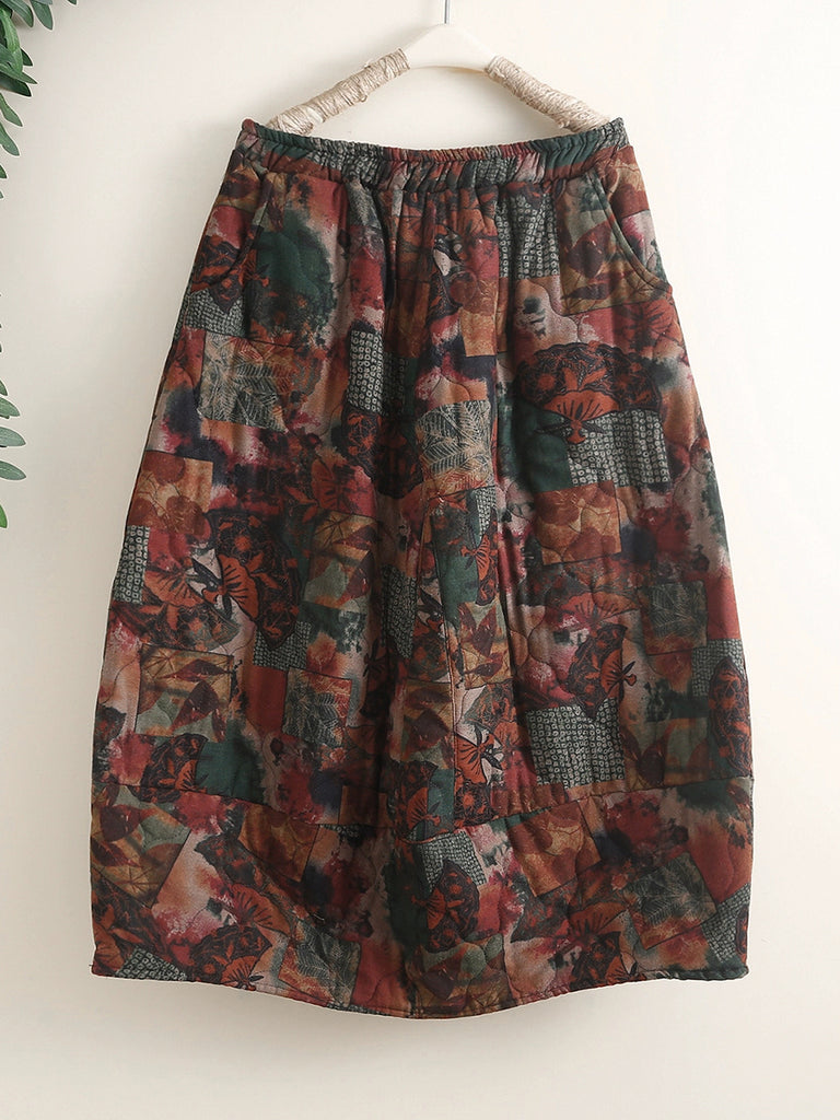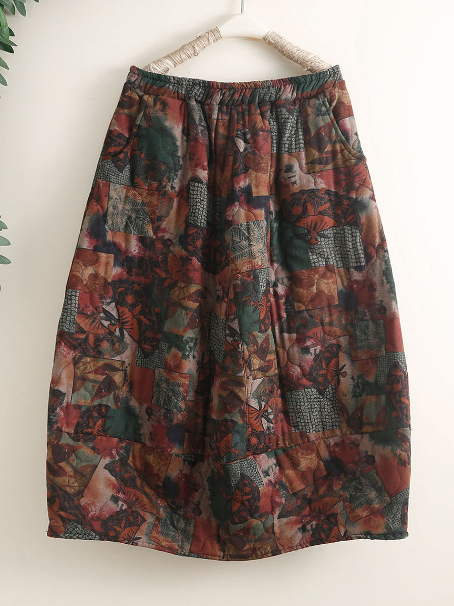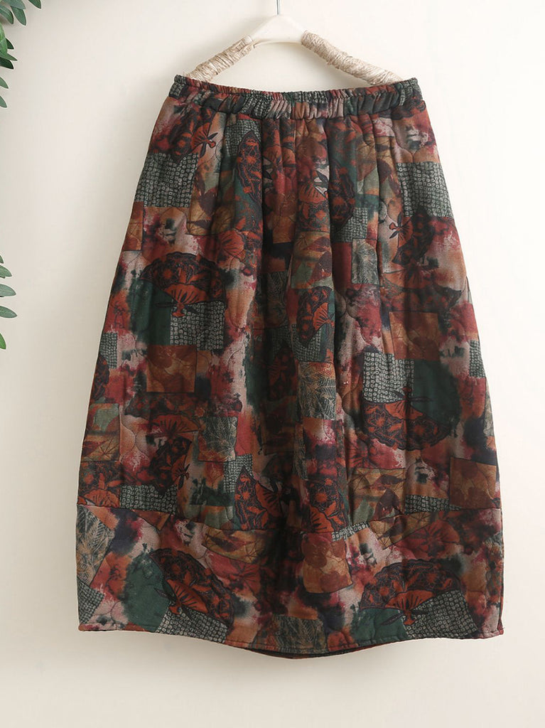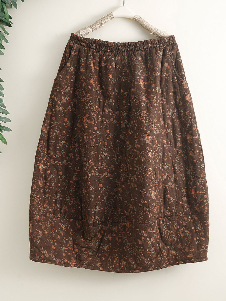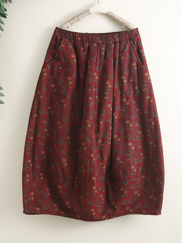 Women Autumn Retro Floral 100%Cotton Padded Bud Skirt