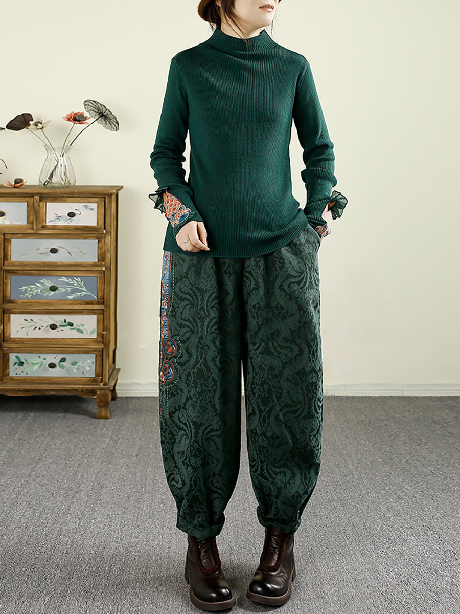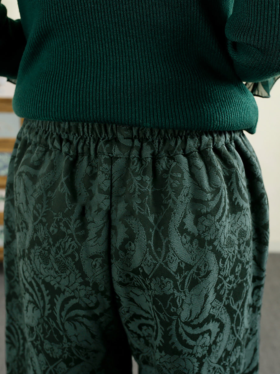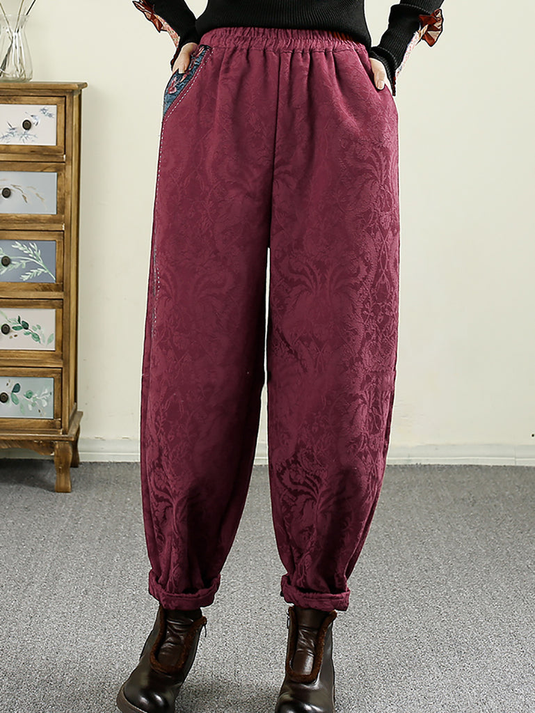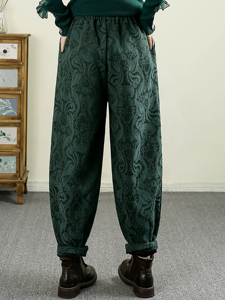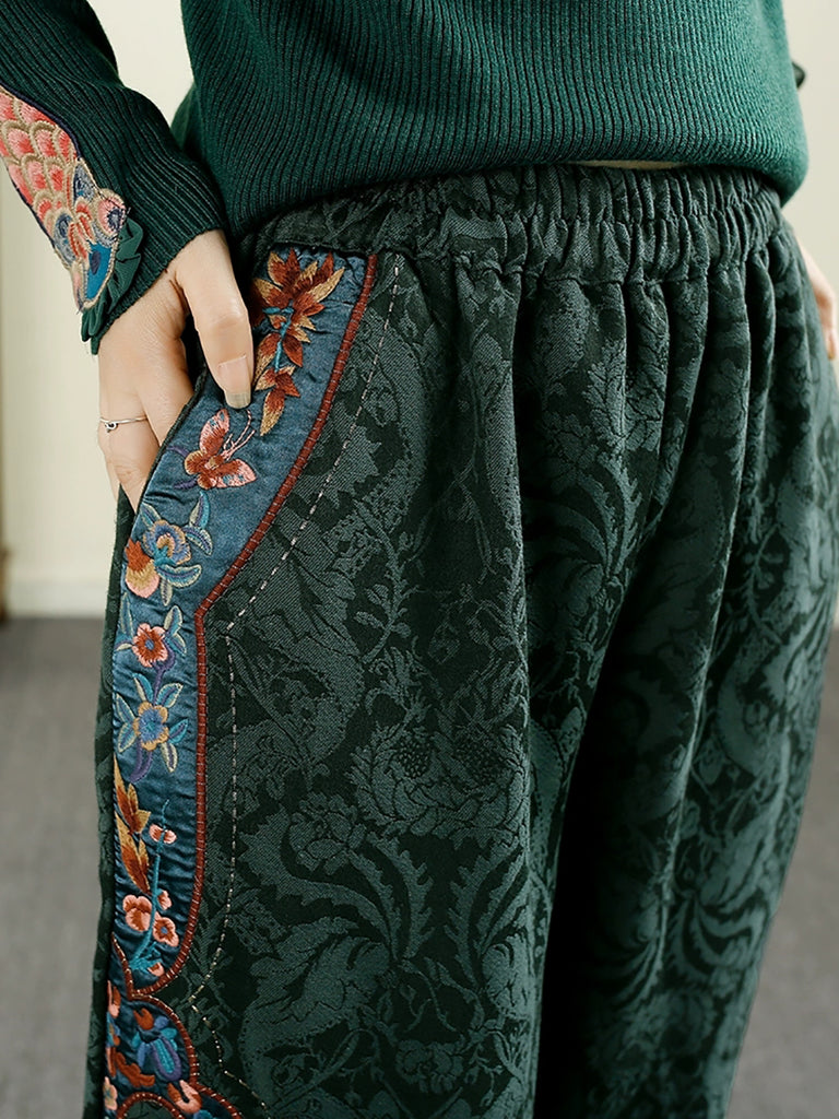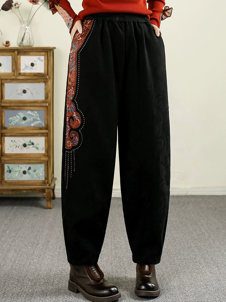 Women Winter Embroidery Jacquard Fleece-lined Harem Pants