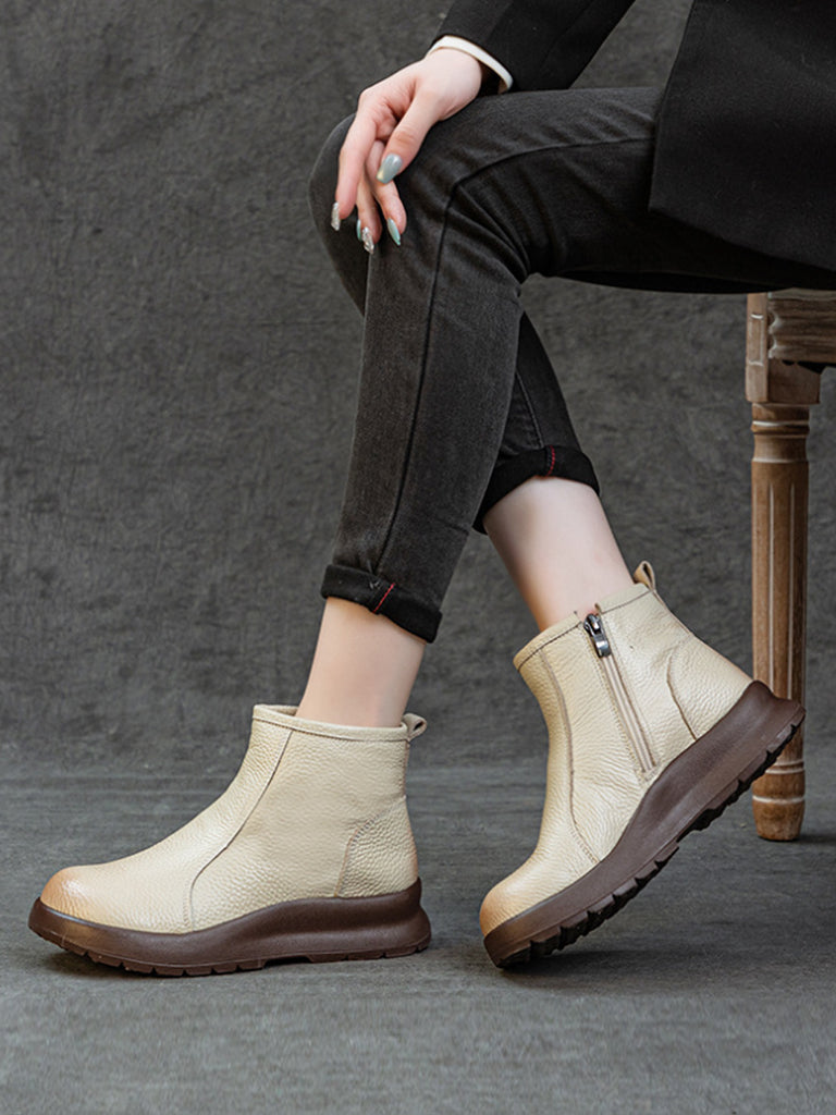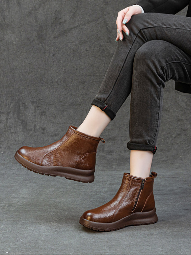 Women Vintage Genuine Leather Fleece-lined Ankle Boots