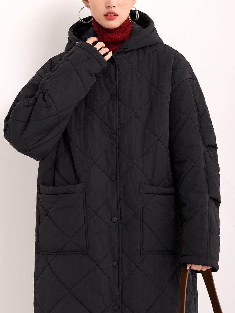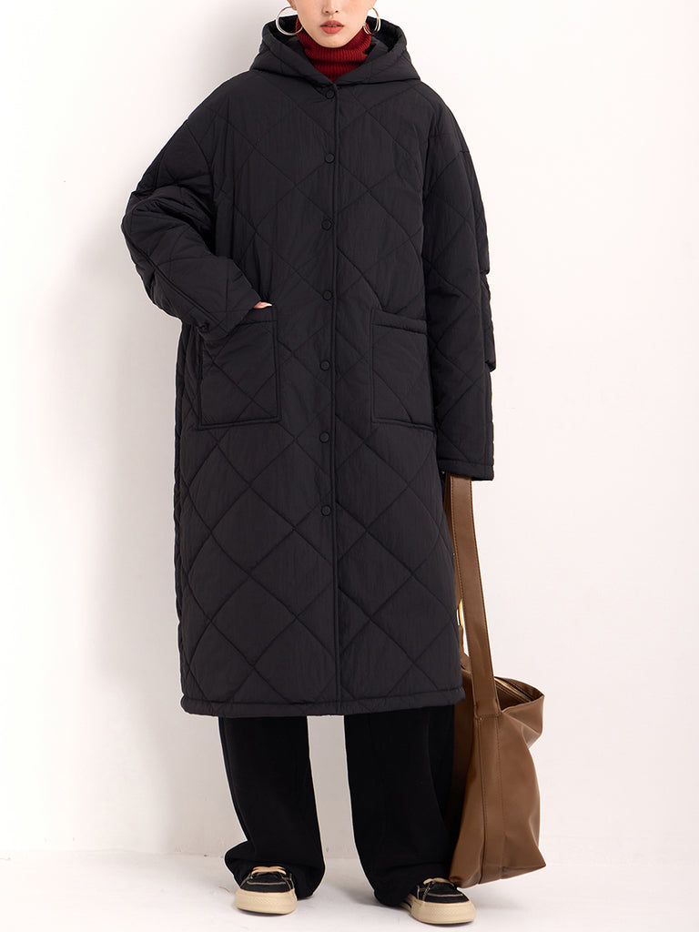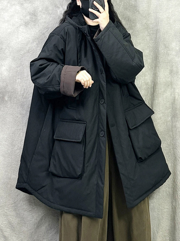 Women Vintage Winter Pure Color Hooded Padded Overcoat