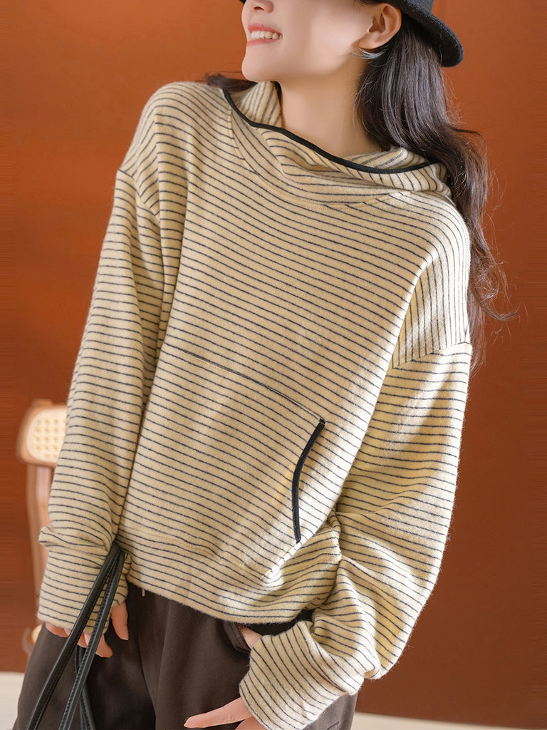 Women Casual Autumn Stripe Pocket Soft Hoodie