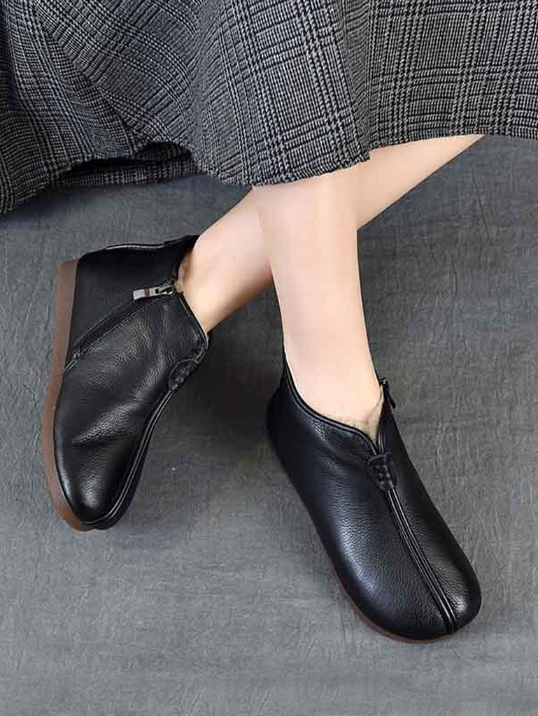 Women Winter Genuine Leather Fleece-lined Ankle Boots