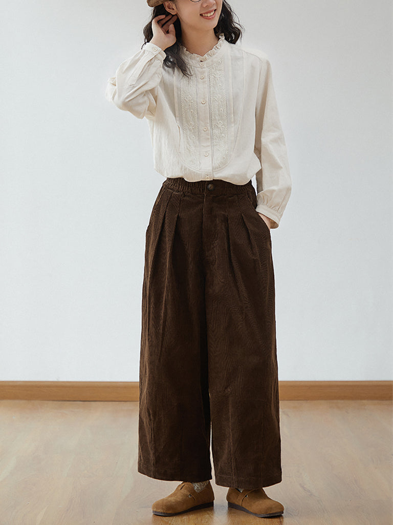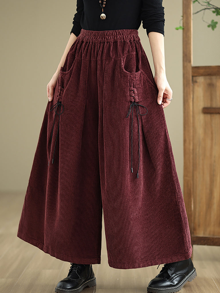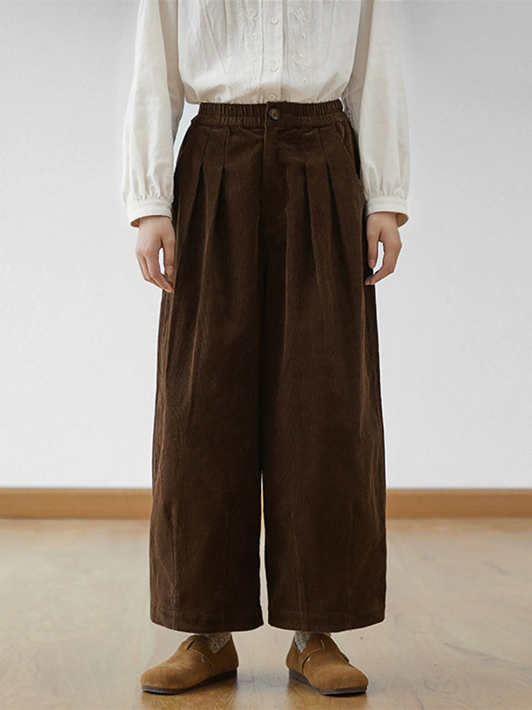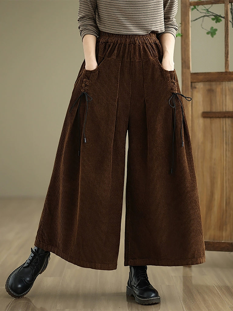 Women Autumn Retro Corduroy Wide-leg Pants