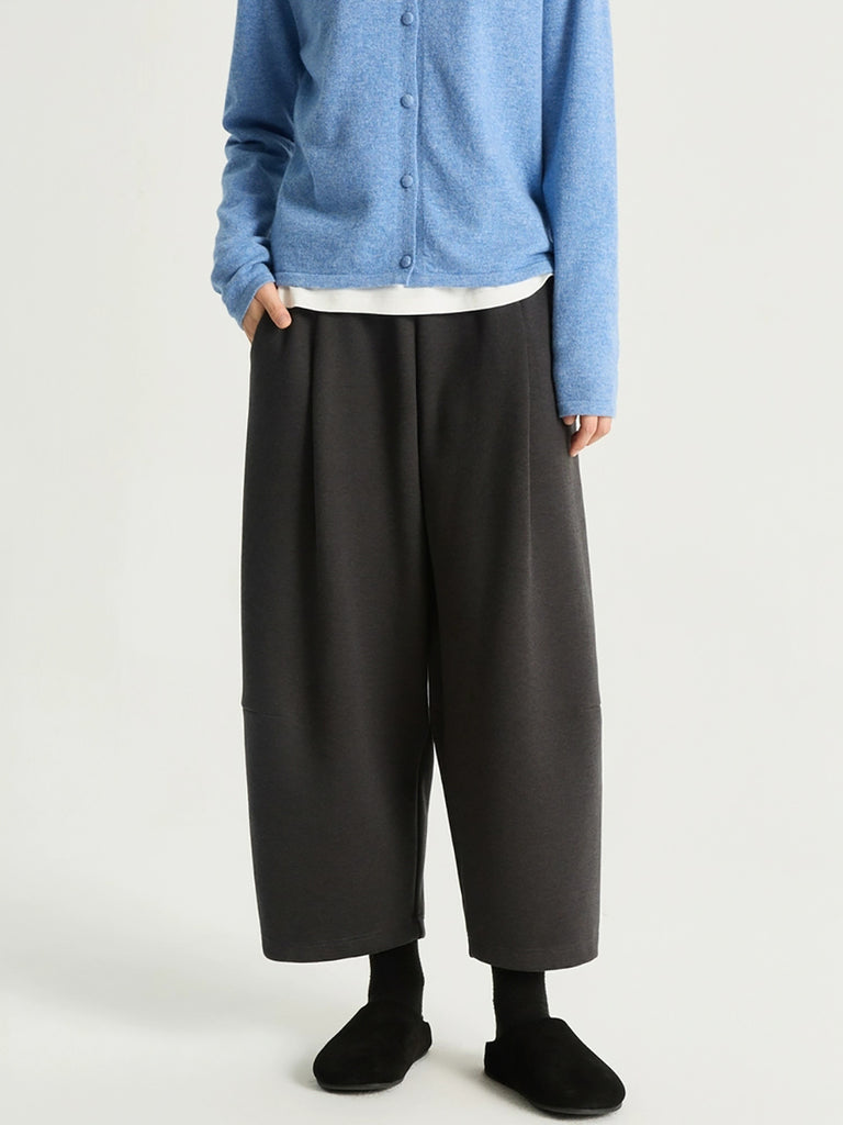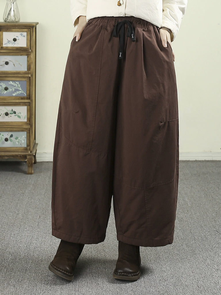 Women Winter Vintage Pure Color Fleece-lined Wide-leg Pants