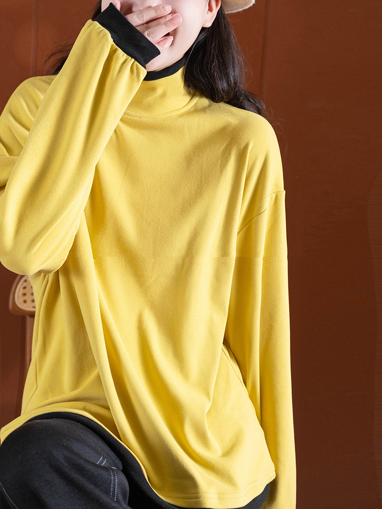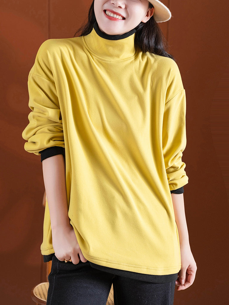 Women Vintage Autumn Colorblock Turtleneck Blouse