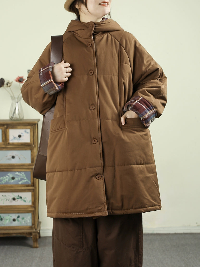 Women Winter Pure Color 100%Cotton Padded Hooded Coat