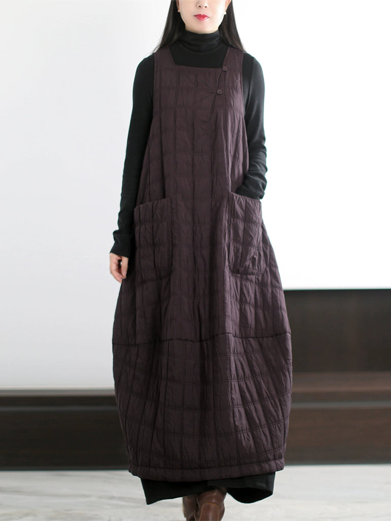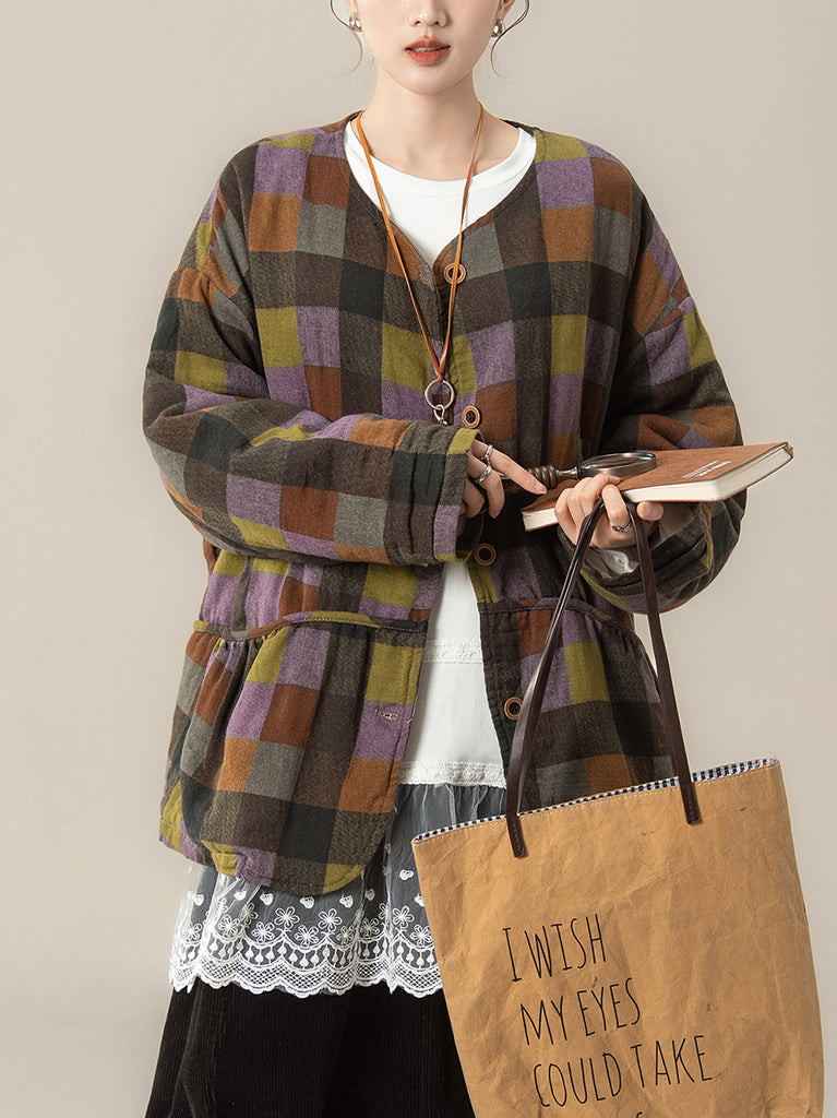 Women Vintage Winter Plaid O-Neck Padded Coat