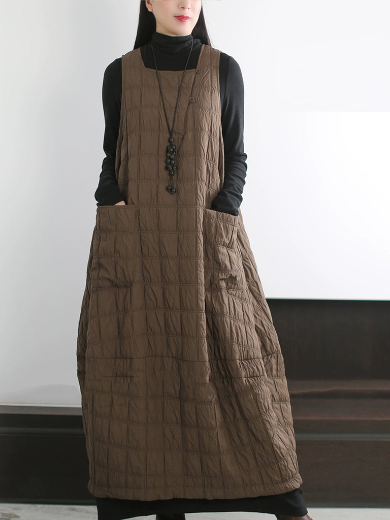 Women Autumn Casual Pure Color Padded Vest Dress