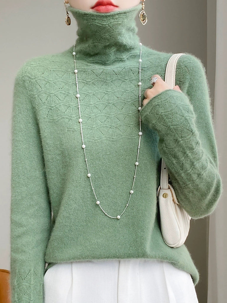 Women Autumn Pure Color Wool Turtleneck Sweater