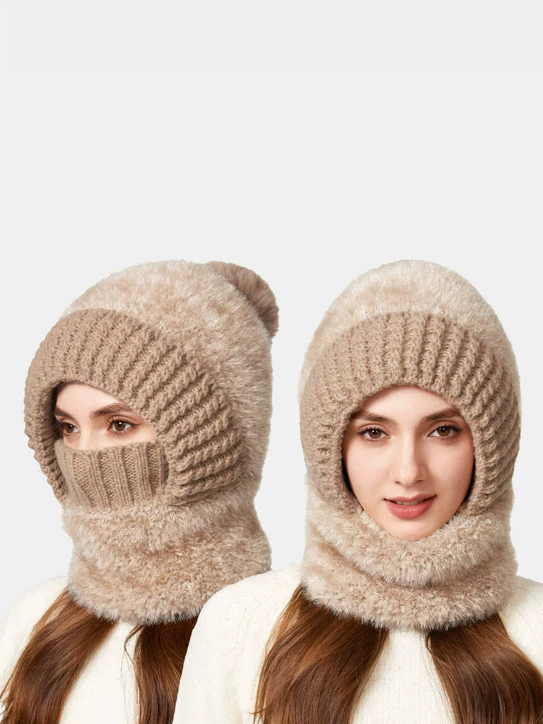 Women Casual Pure Color Plush Knitted Scarf+Hat