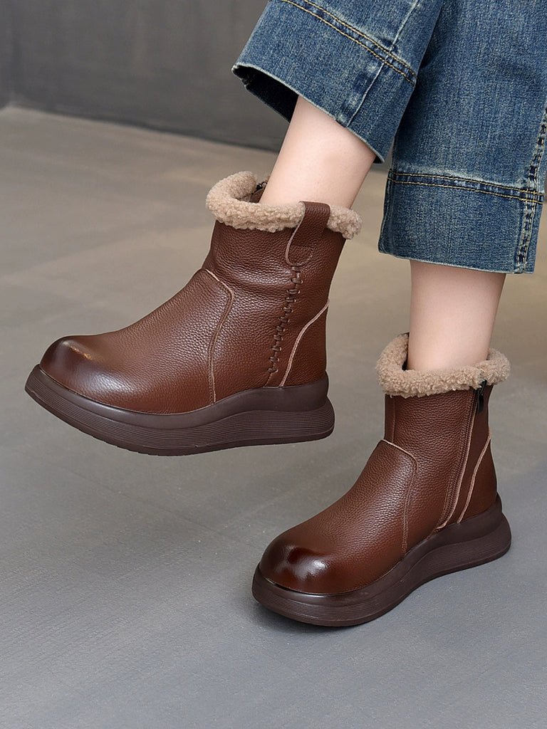 Women Vintage Genuine Leather Fleece-lined Platform Boots