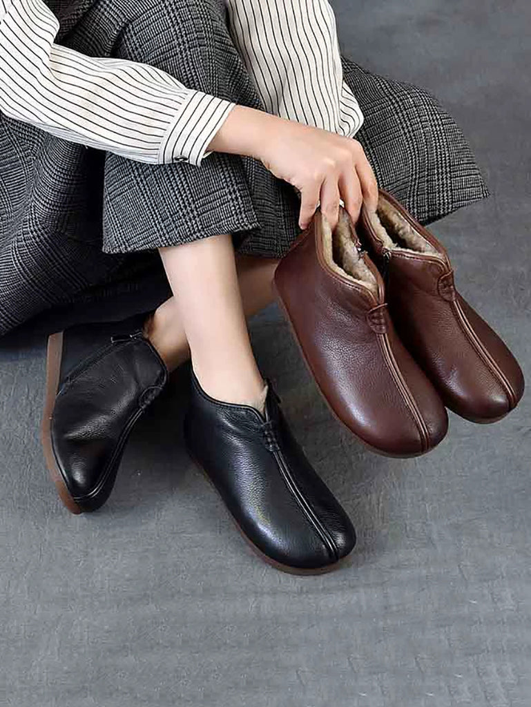 Women Vintage Genuine Leather Fleece-lined Boots