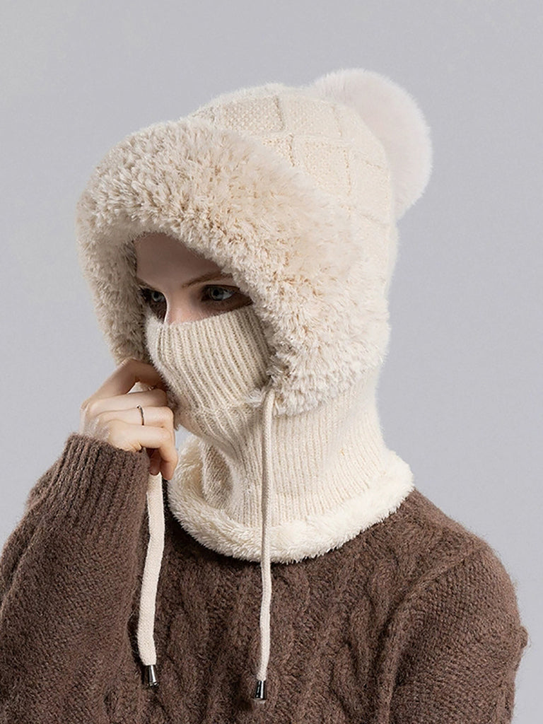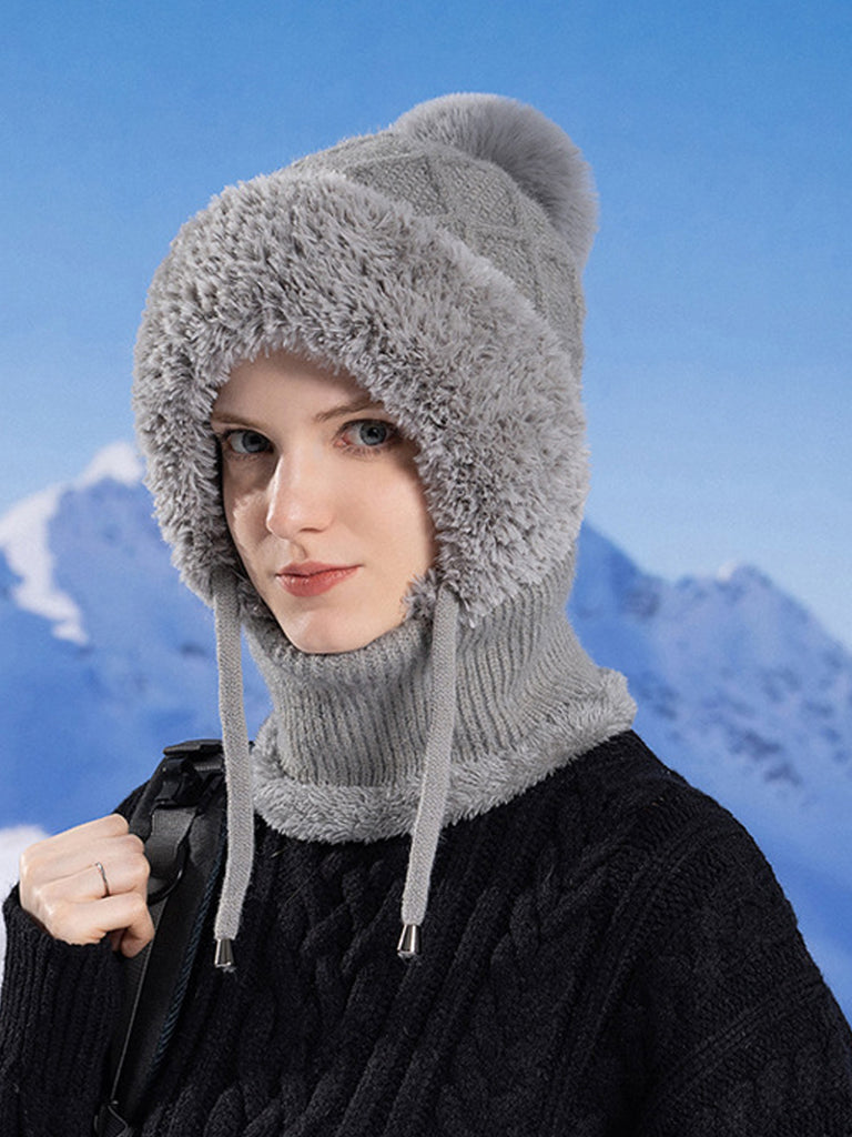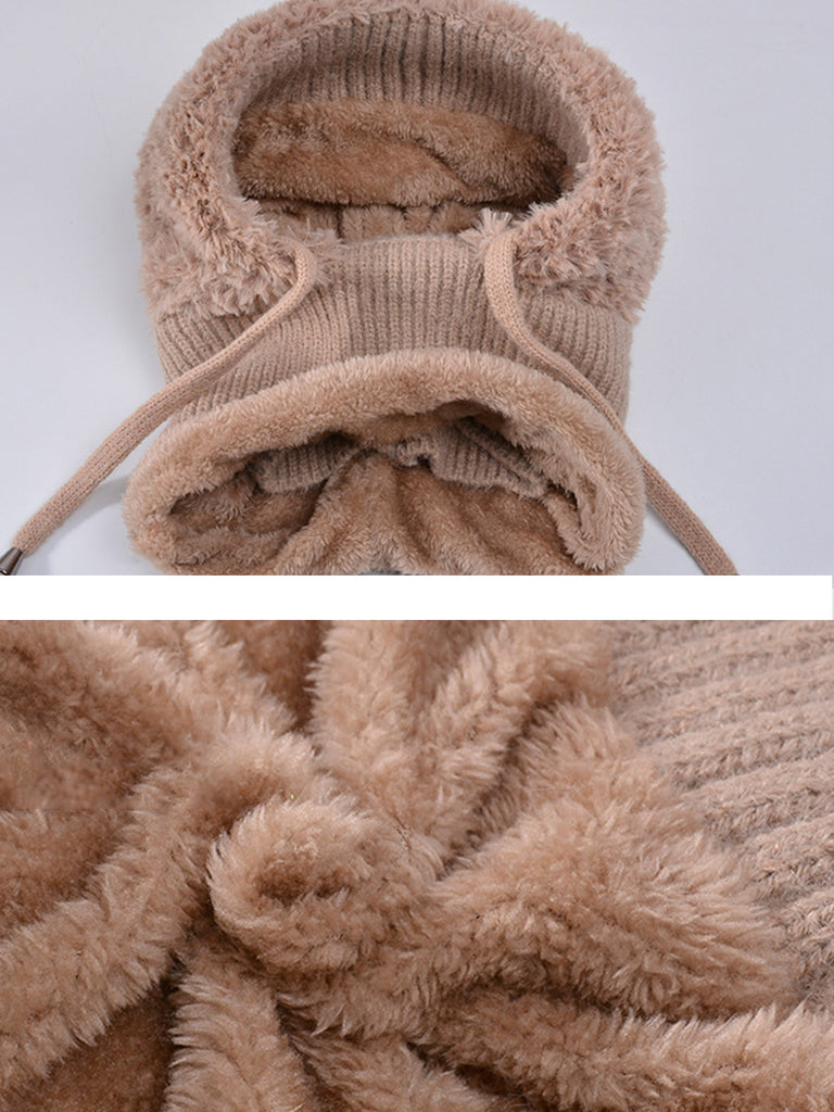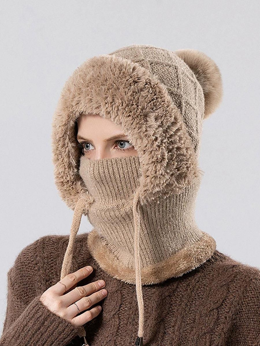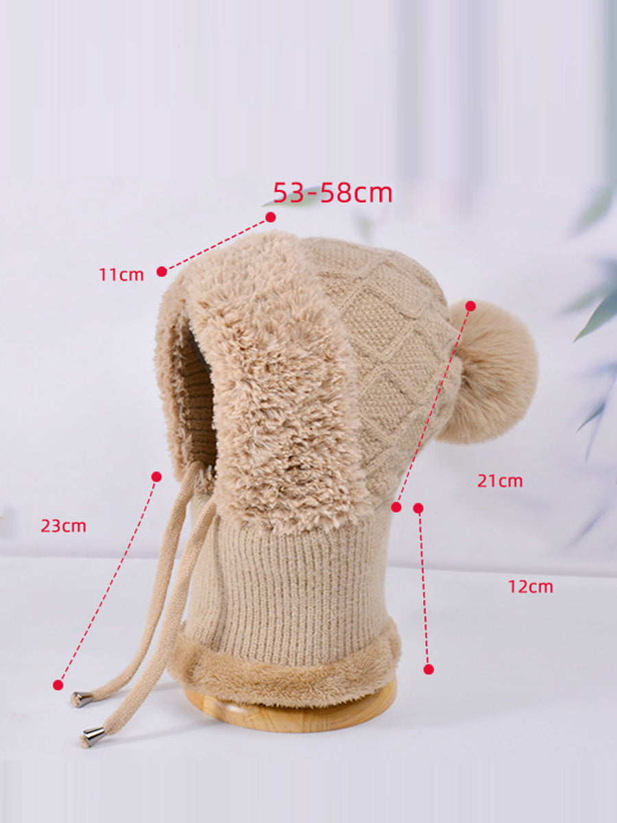 Women Casual Winter Knitted Plush Scarf+Hat
