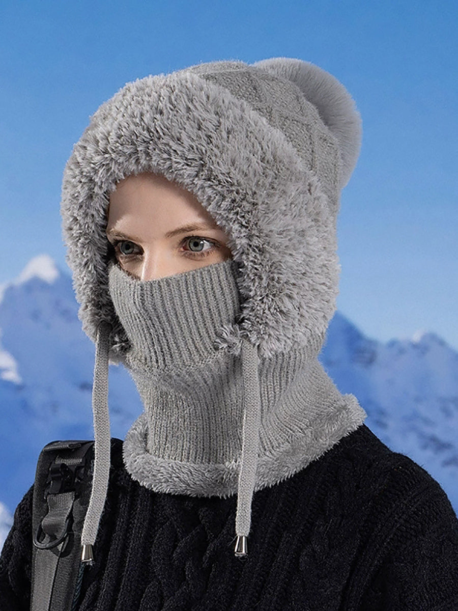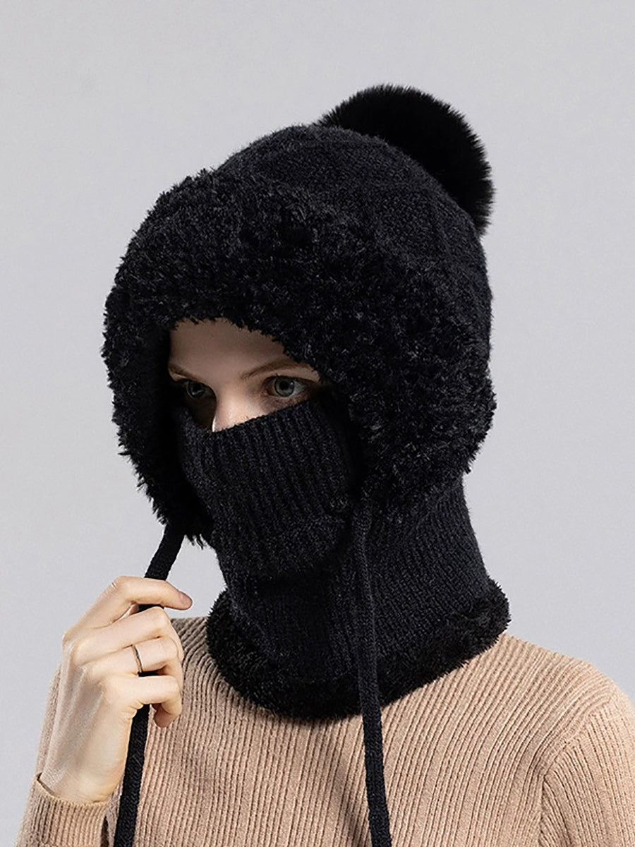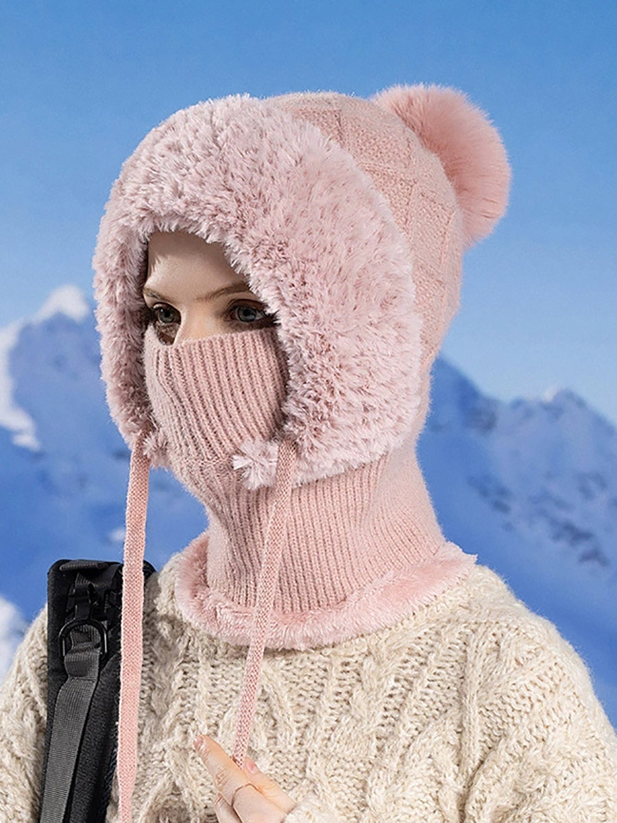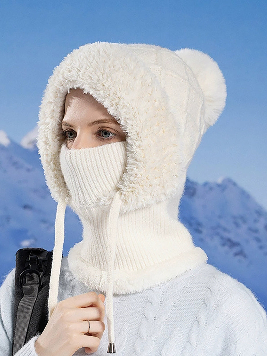 Women Casual Winter Knitted Plush Scarf+Hat
