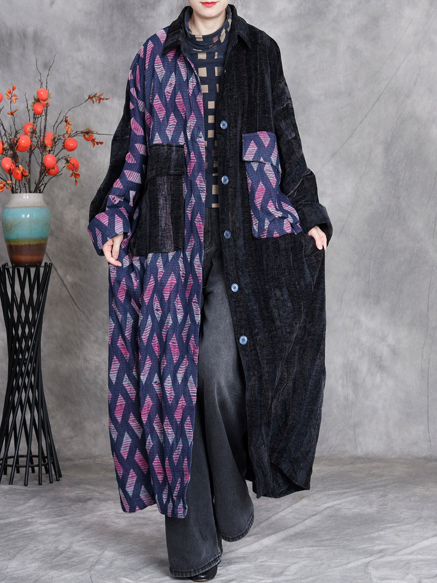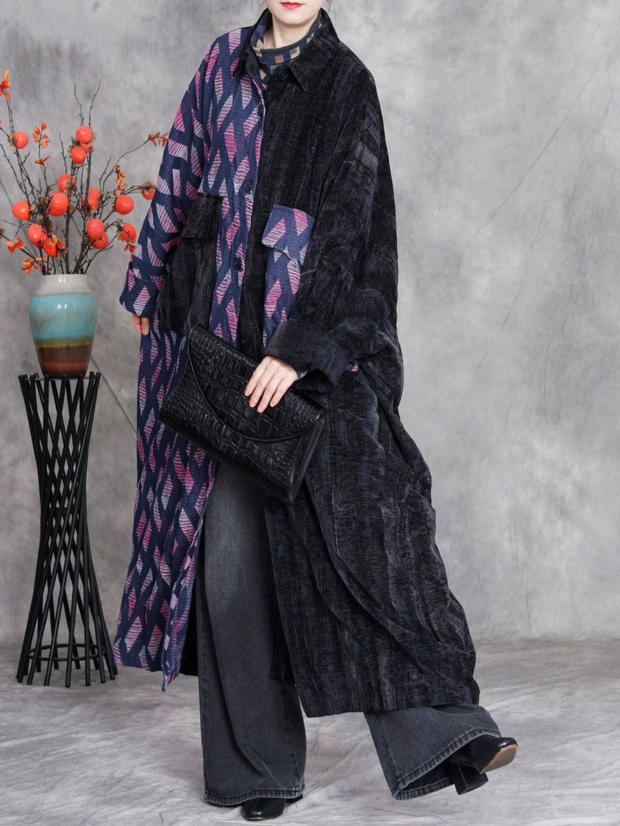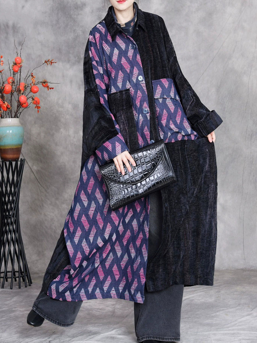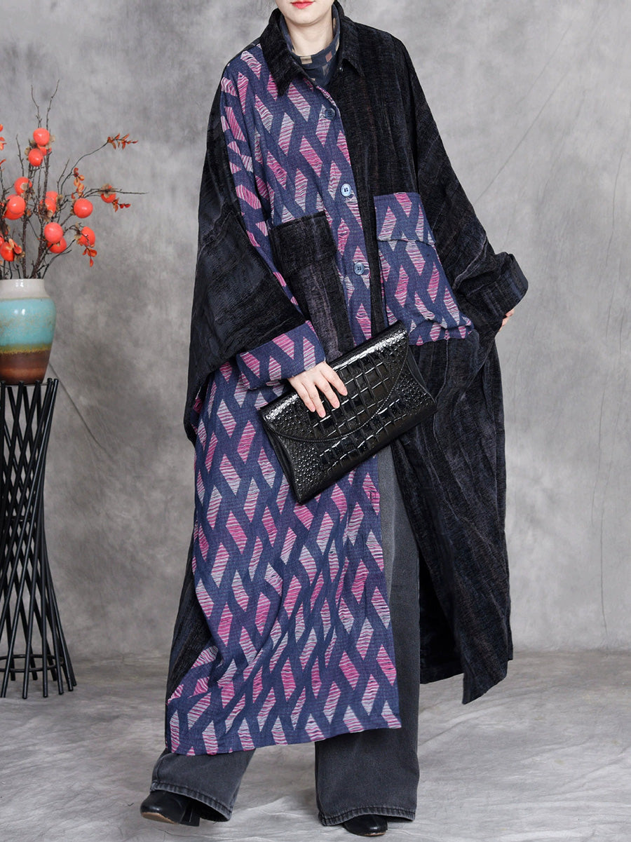 This sophisticated winter overcoat combines timeless design elements with contemporary styling. The distinctive plaid pattern pairs seamlessly with a classic turn-down collar, while the full-length batwing sleeves deliver both comfort and a retro-inspired silhouette. Expertly crafted for the cooler months, this denim piece transitions effortlessly from autumn through winter, offering versatile layering potential for any wardrobe.
