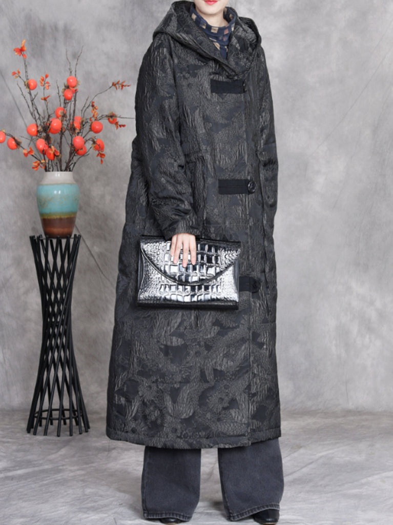 Women Vintage Winter Flower Jacquard Hooded Padded Coat