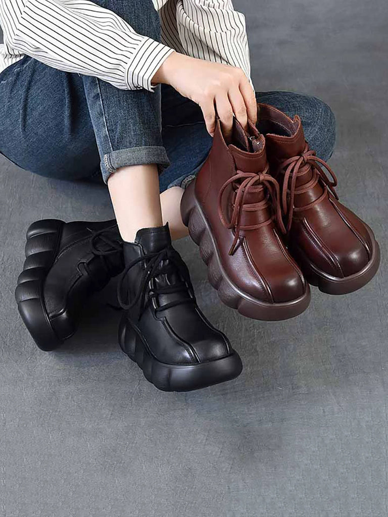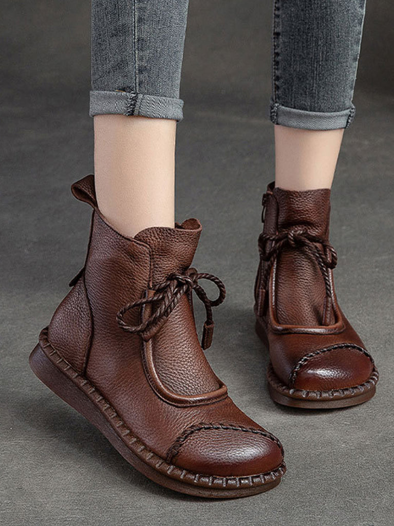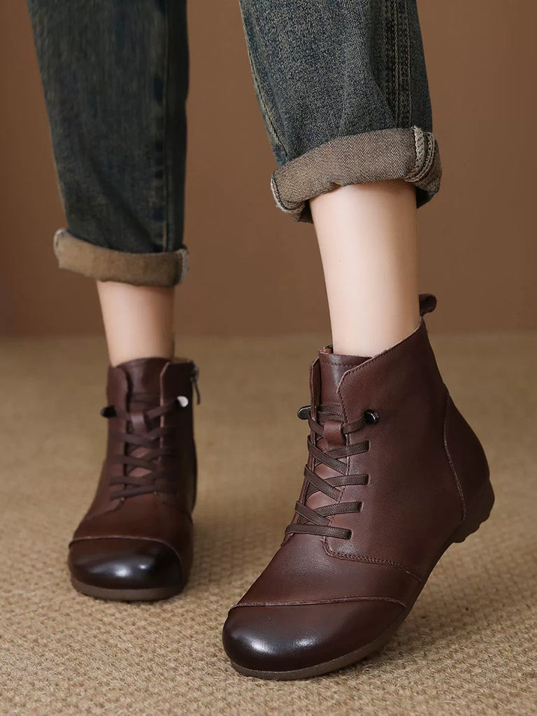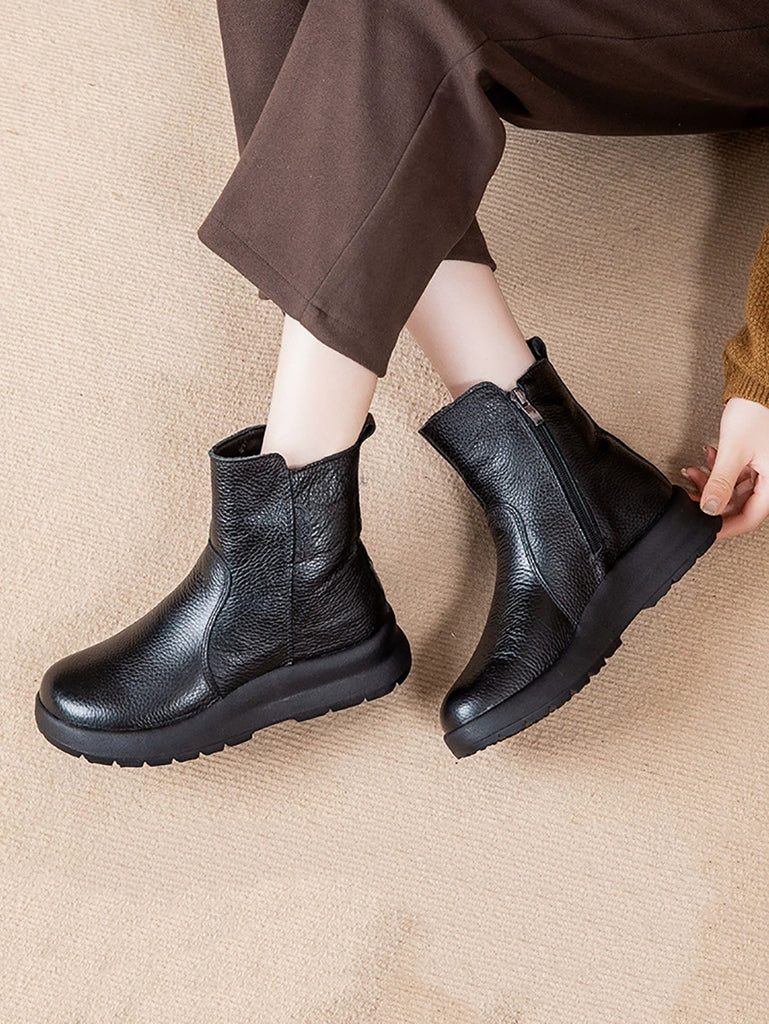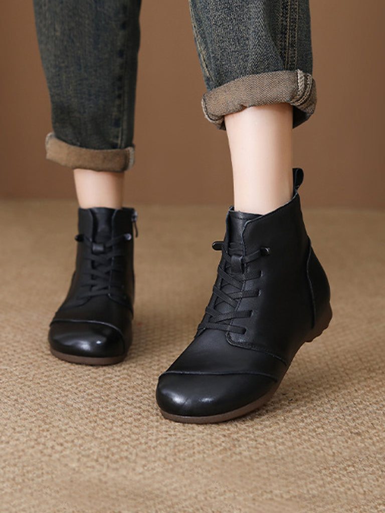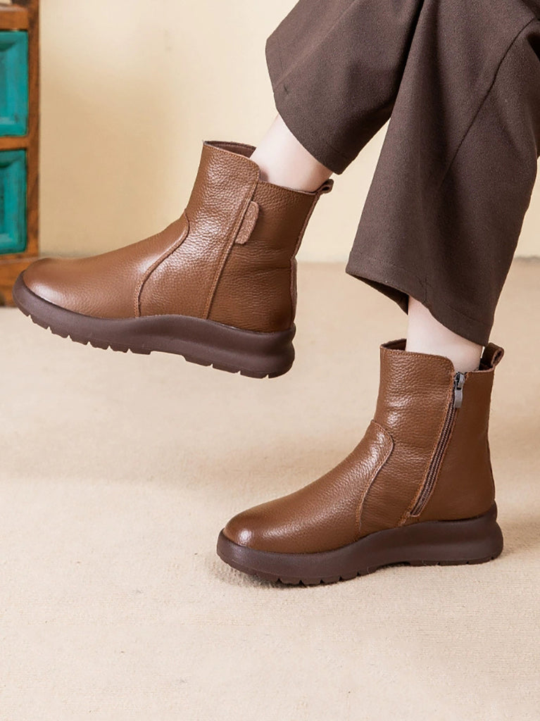 Women Vintage Genuine Leather Fleece-lined Ankle Boots