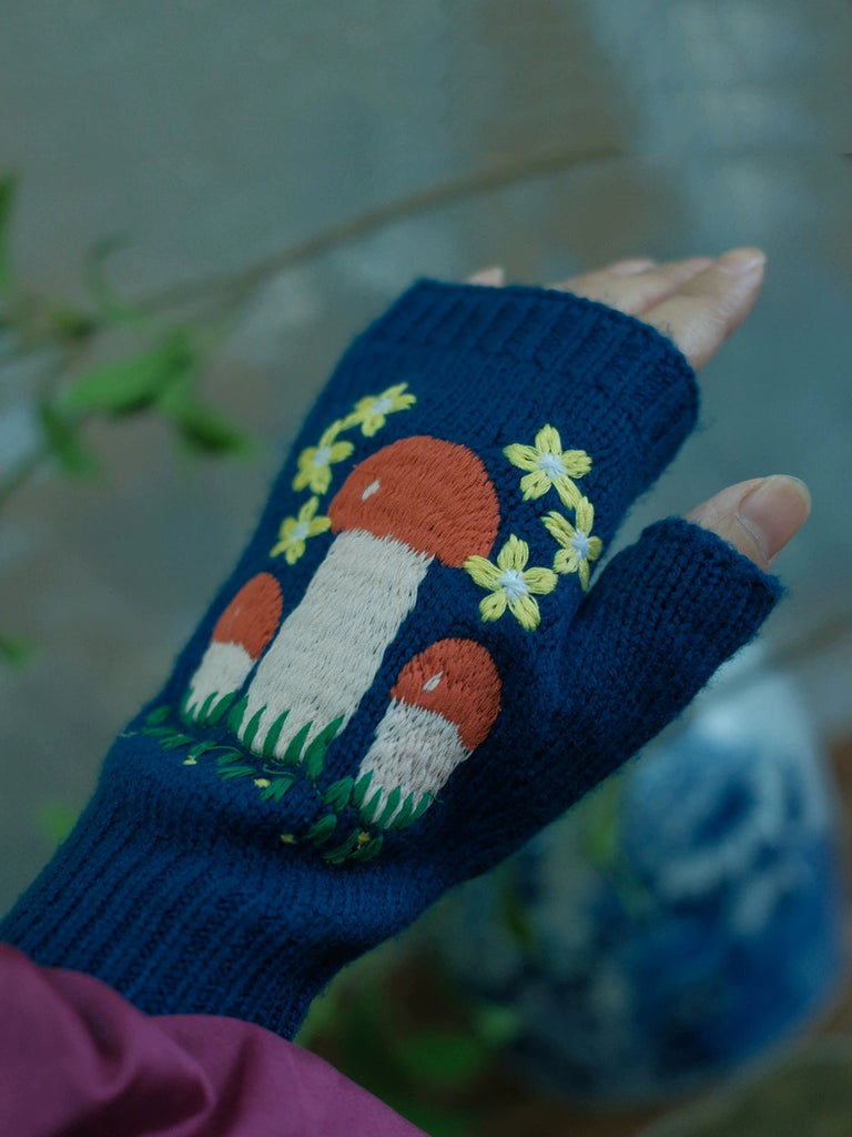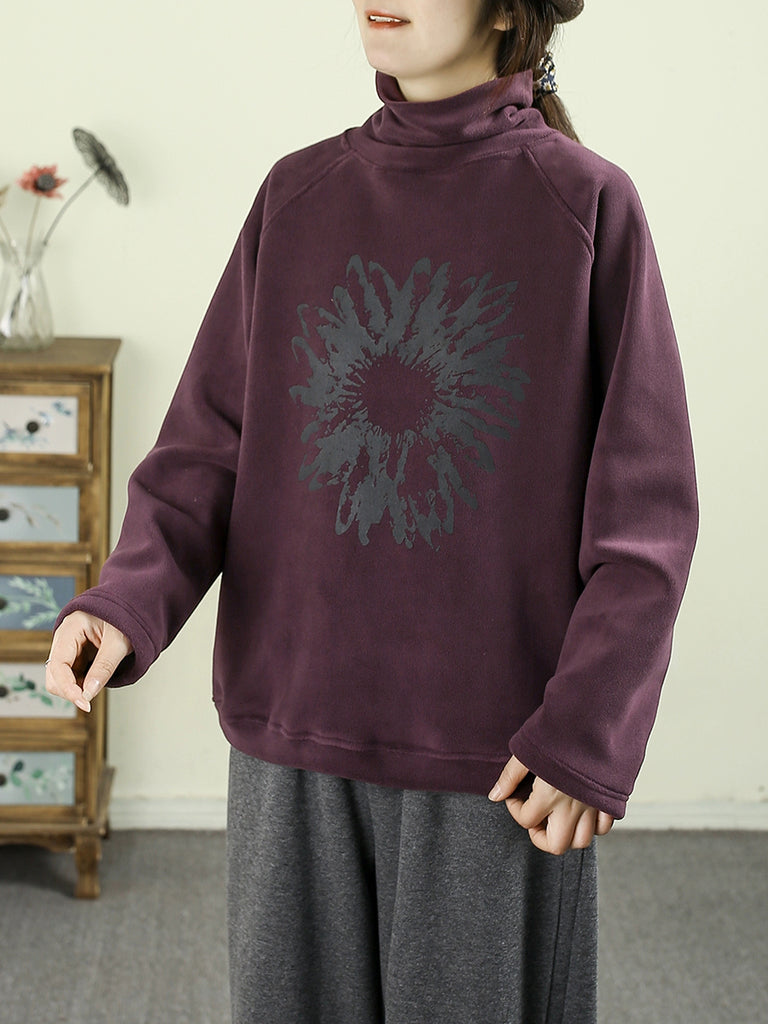 Women Vintage Autumn Flower Fleeve-lined Turtleneck Blouse