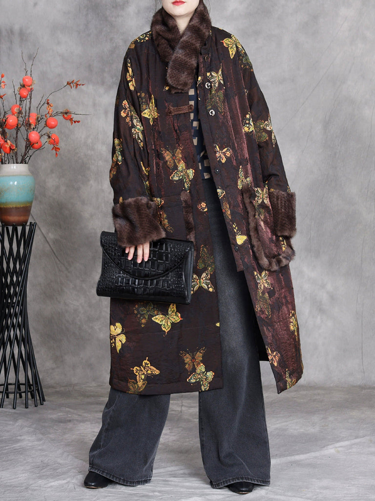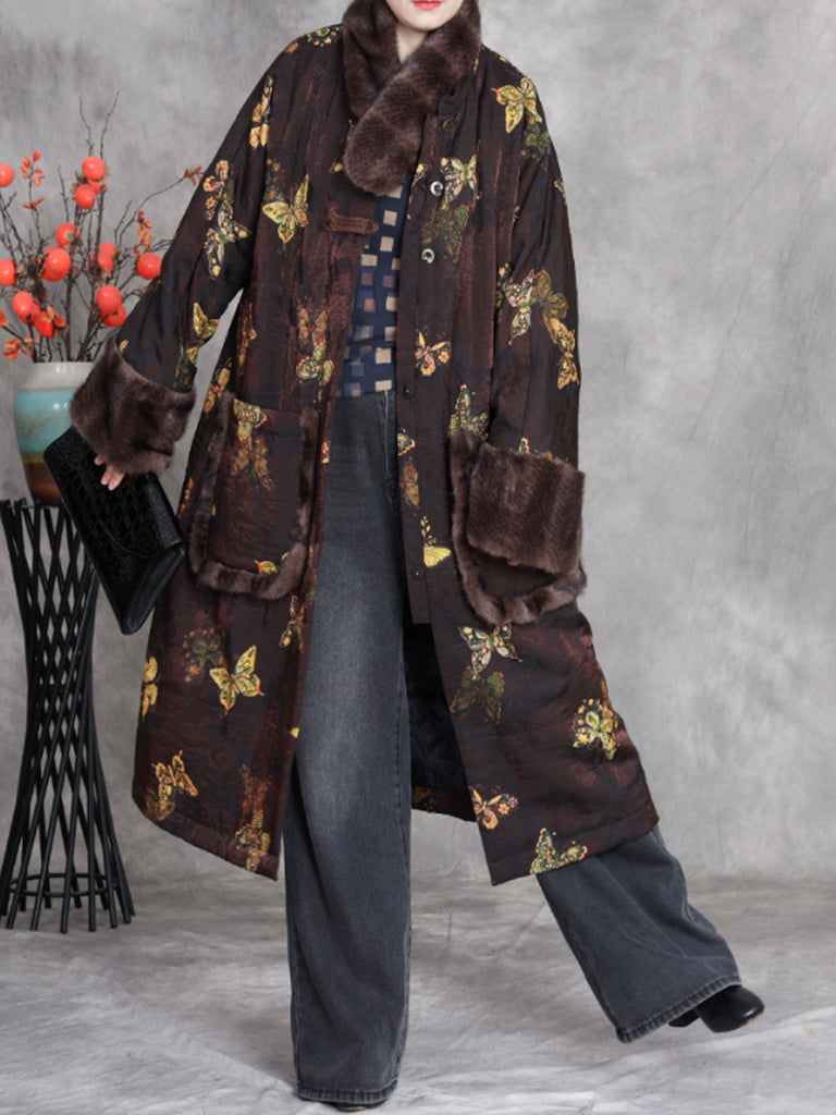 Women Vintage Winter Butterfly Cotton O-Neck Padded Coat