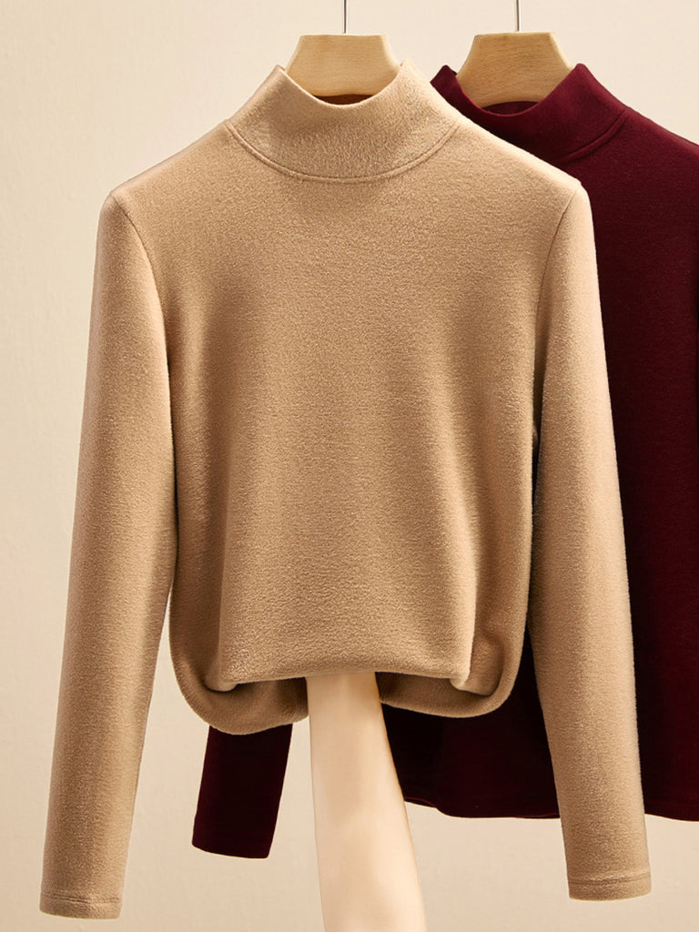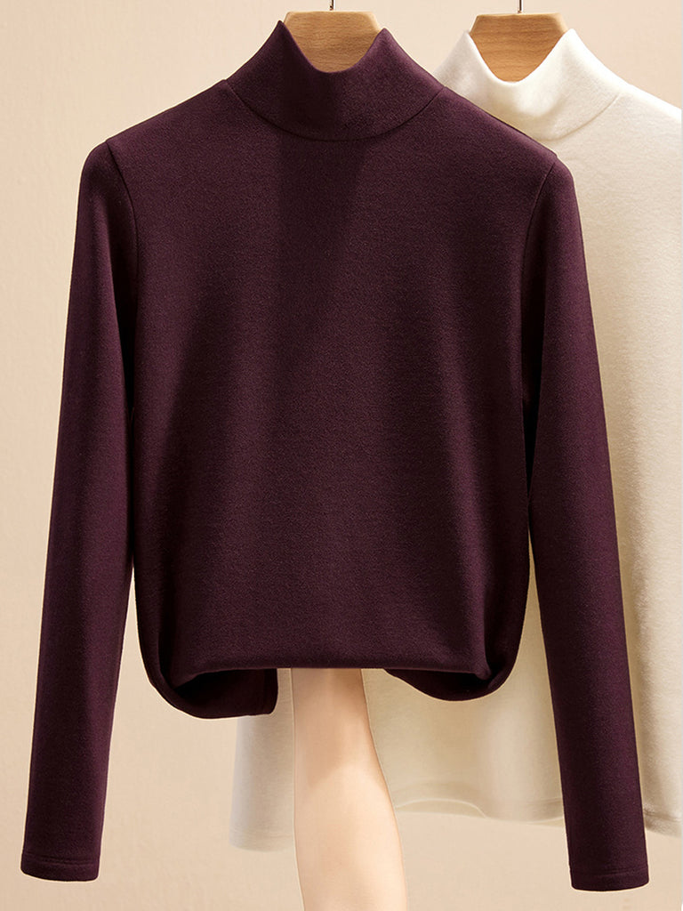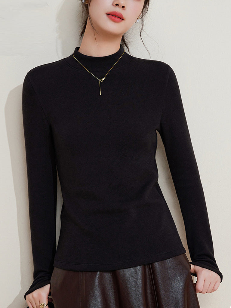 Women Vintage Winter Pure Color Half-Turtleneck Base Blouse