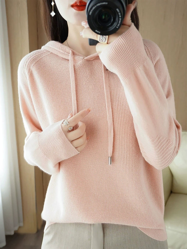 Women Casual Autumn Pure Color Hooded Knitted Sweater