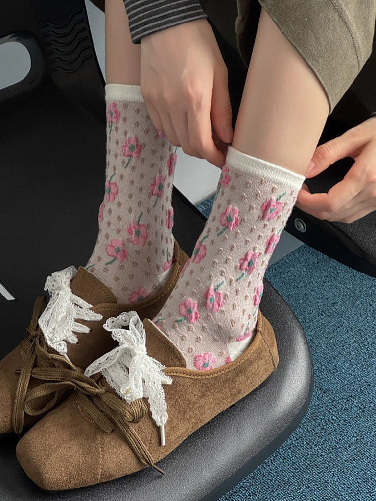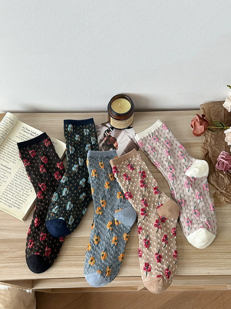 5 Pairs Women Artsy Flower Embossing Cotton Socks