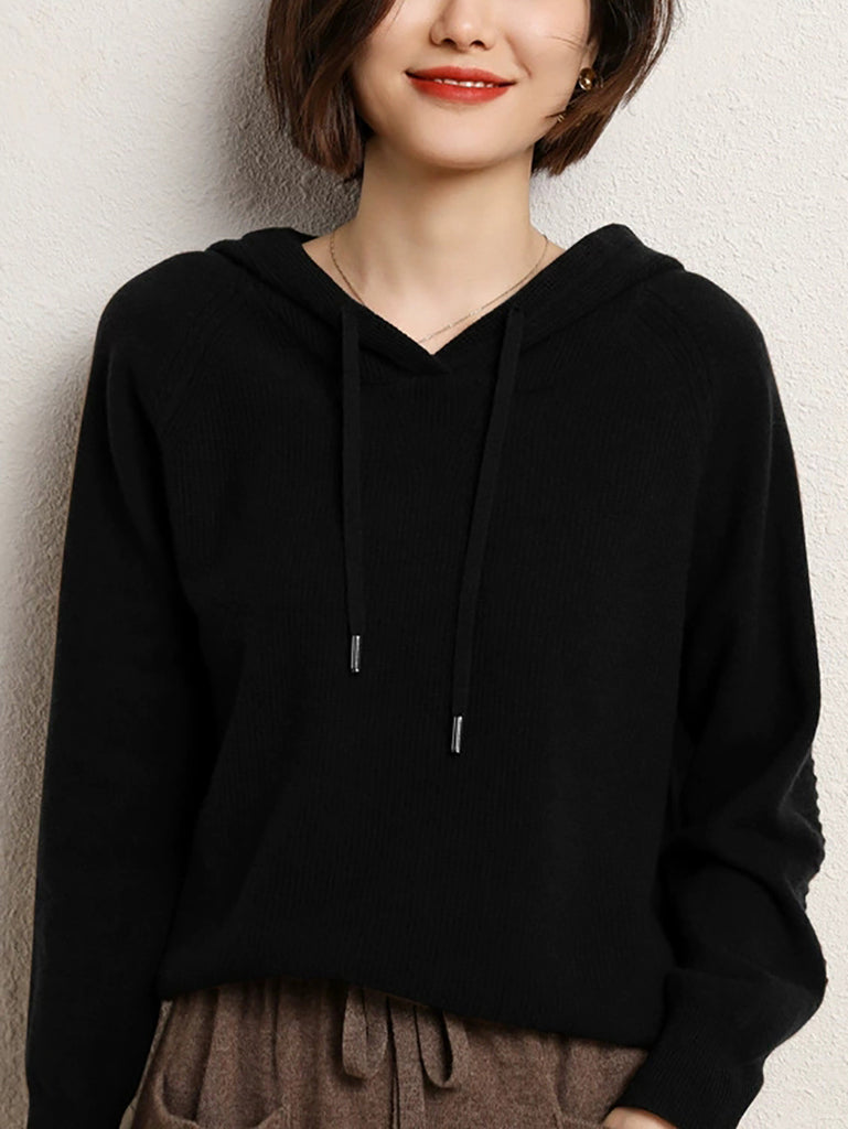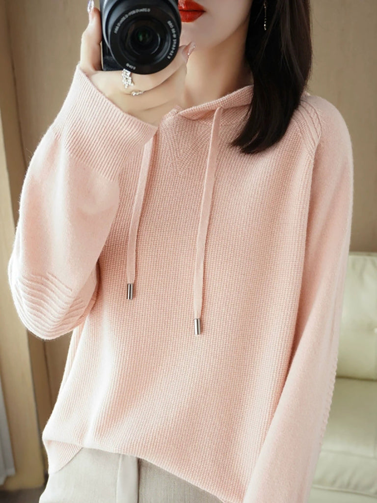 This versatile hooded knitted sweater combines timeless elegance with practical comfort for the cooler months. Featuring a clean, solid-color design and relaxed raglan sleeves, it delivers an effortlessly casual aesthetic suitable for autumn and winter wear. The full-length sleeves and cozy hood provide warmth and coverage, while the refined silhouette ensures a flattering fit for everyday styling. Perfect for layering or wearing standalone, this piece transitions seamlessly from casual outings to relaxed indoor settings.