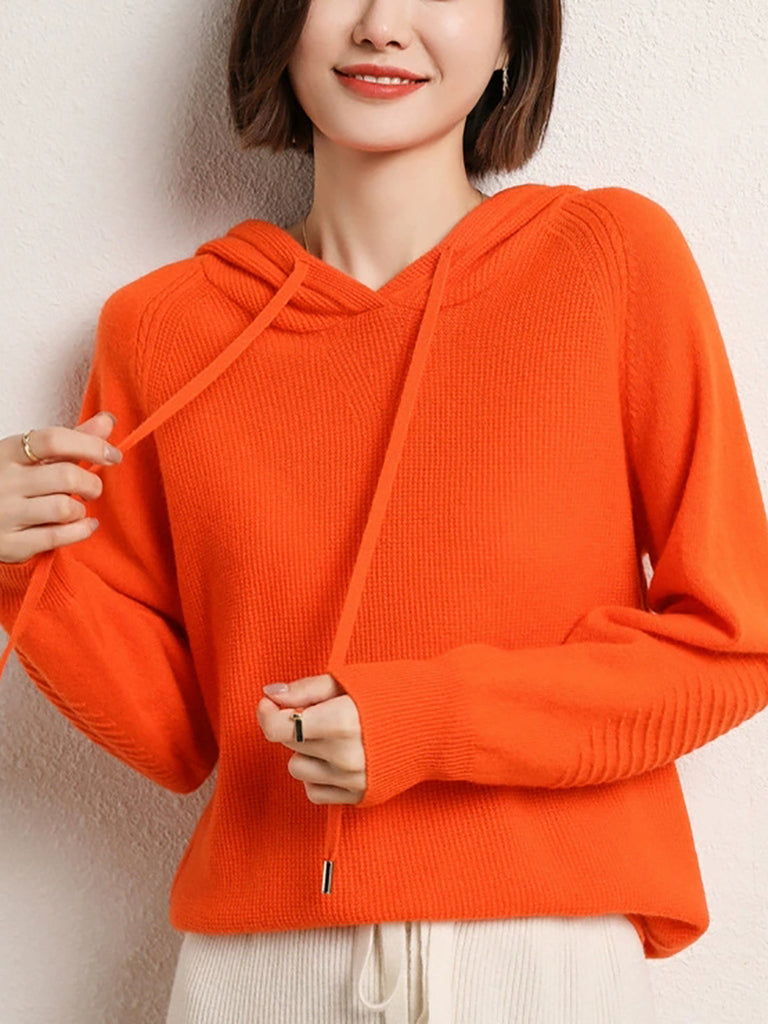 Women Casual Autumn Pure Color Hooded Knitted Sweater