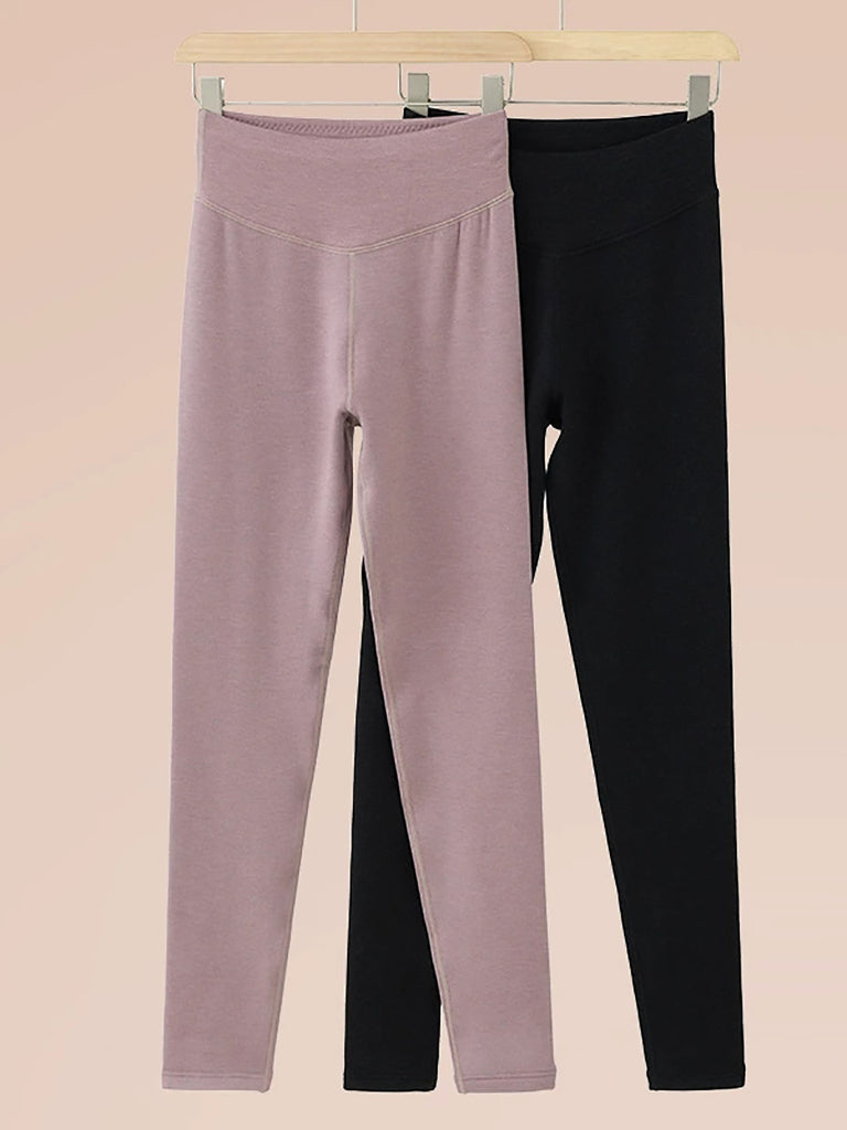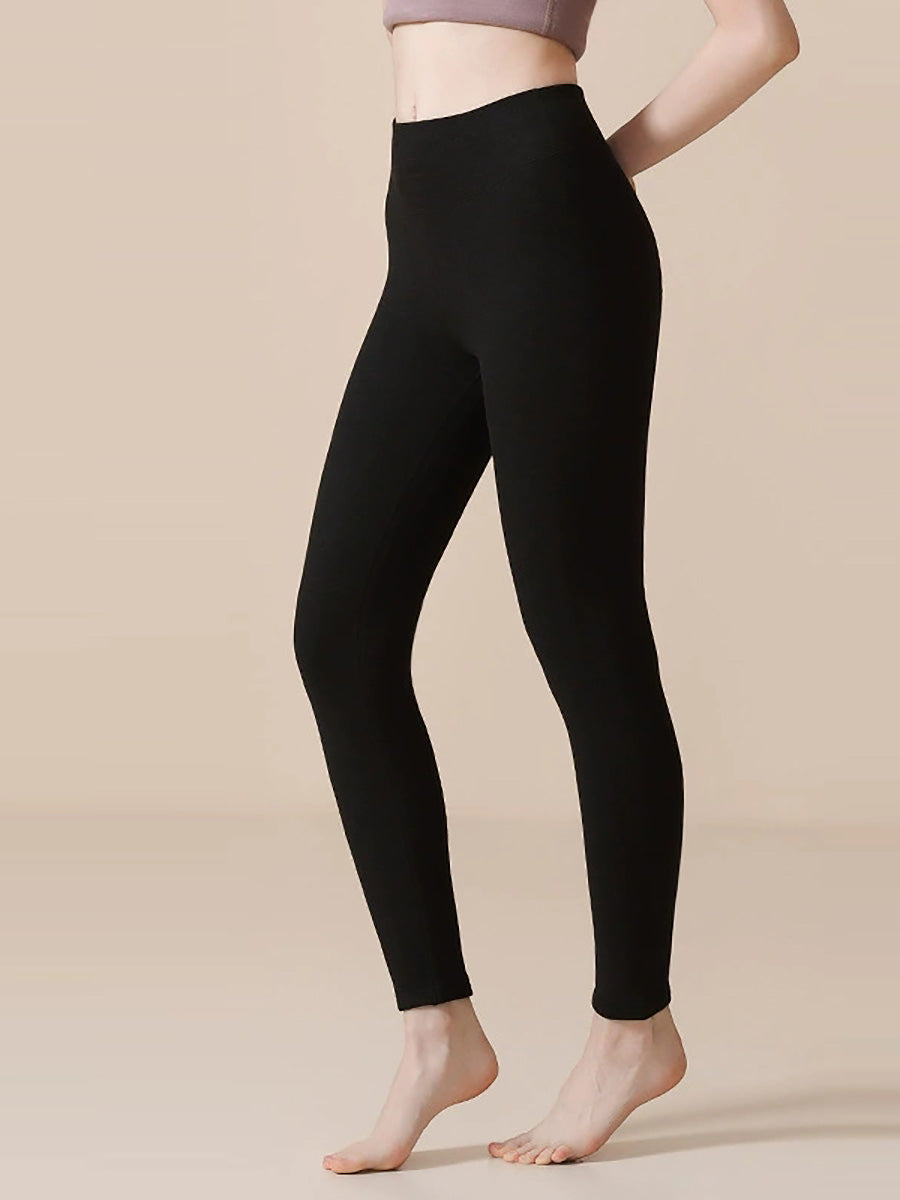 Women Winter Warm Pure Color Fleece-lined Leggings