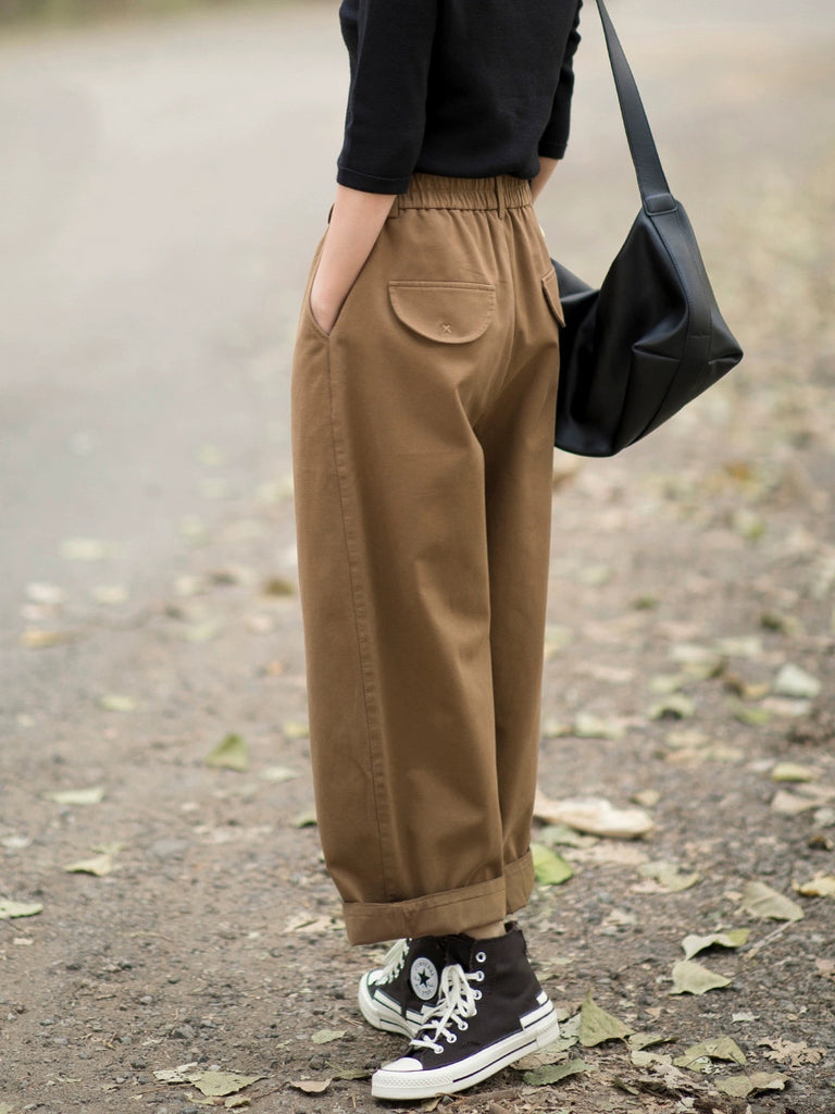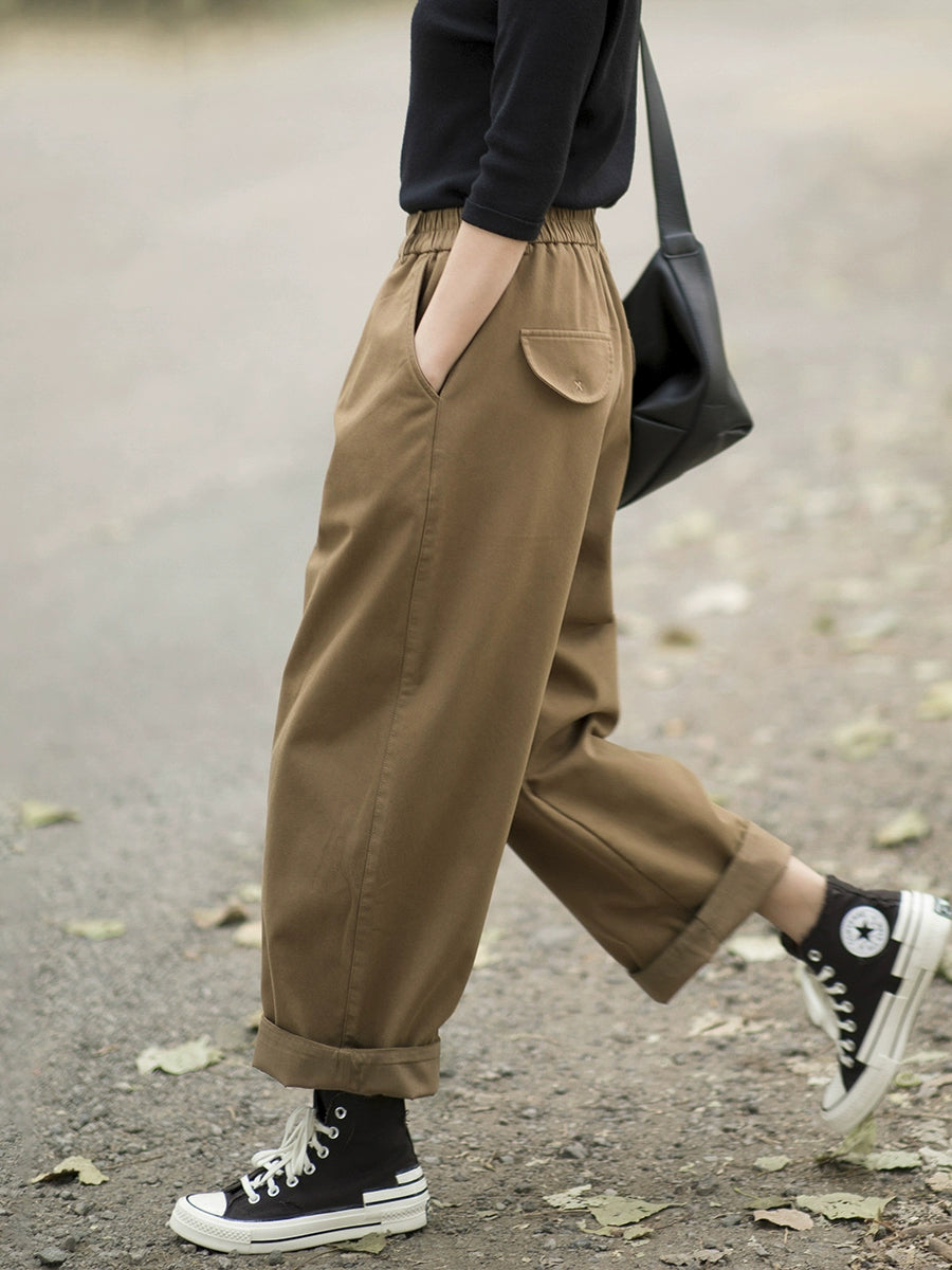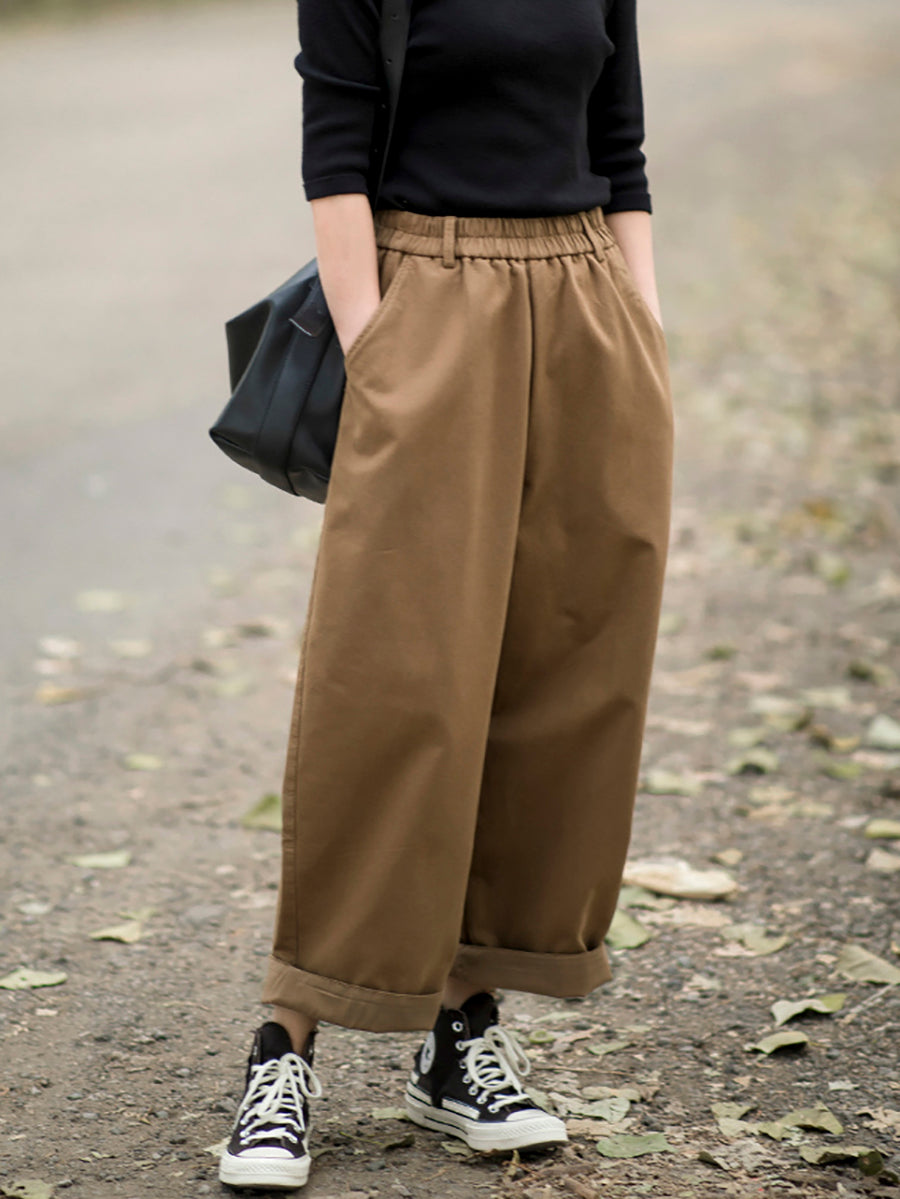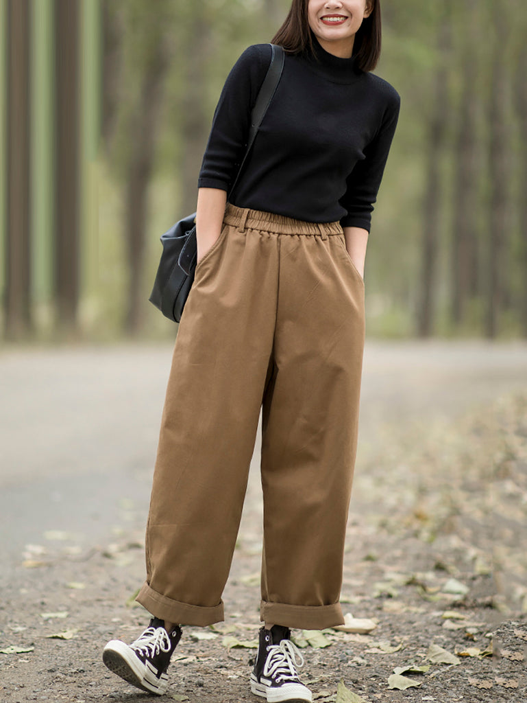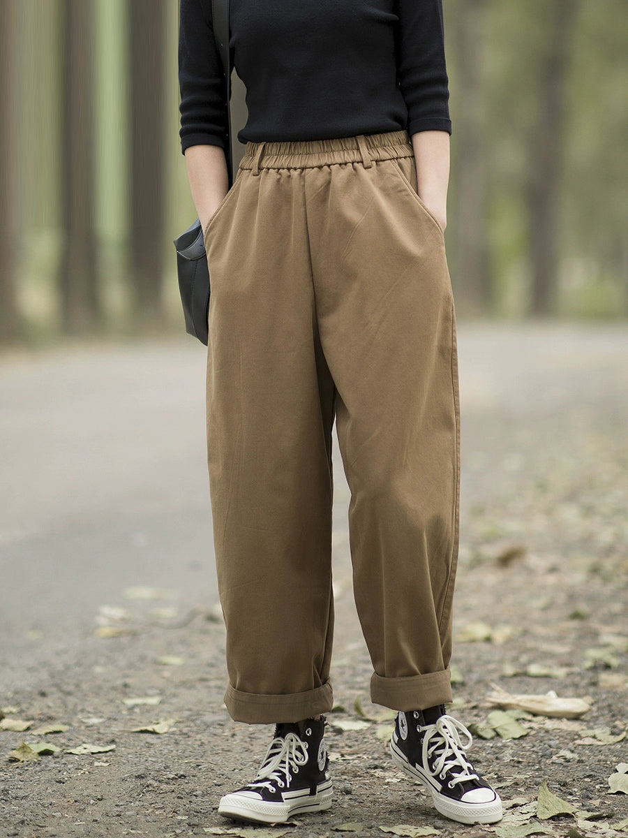 Women Winter Pure Color 100%Cotton Fleece-lined Harem Pants