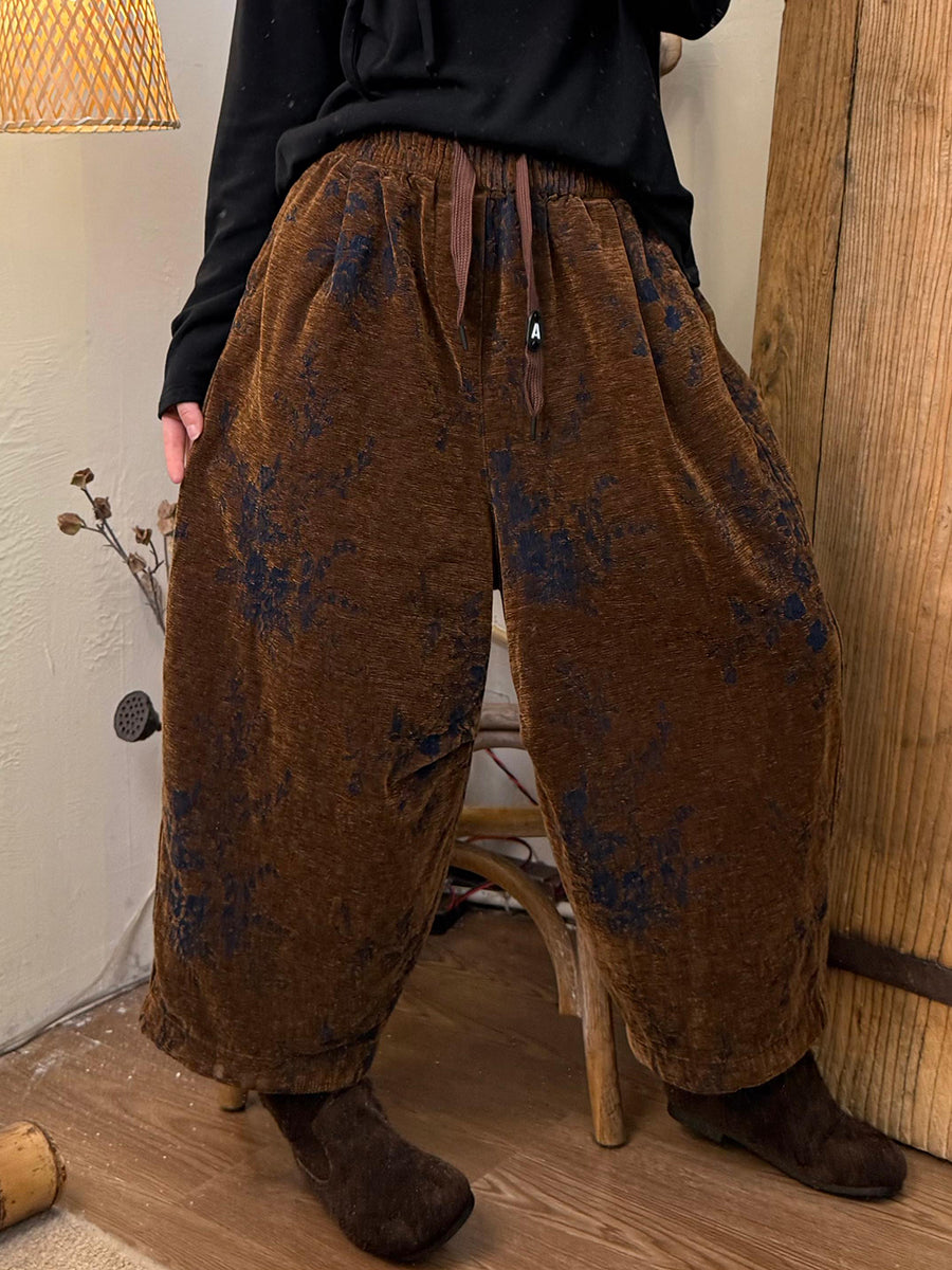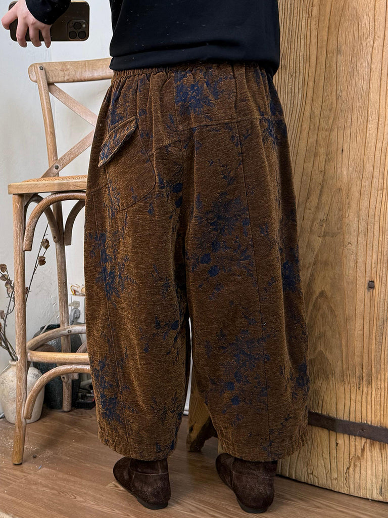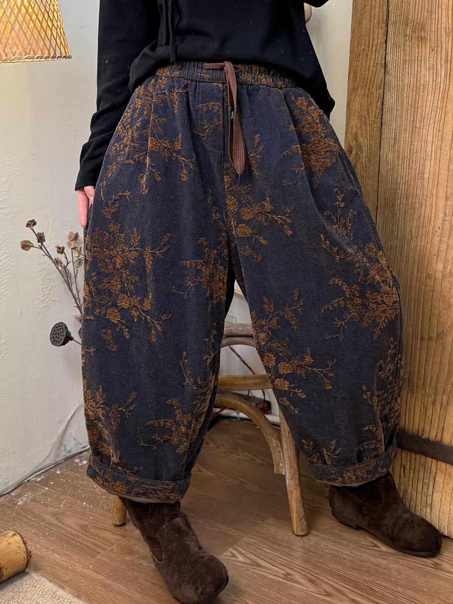 Women Winter Retro Flower Jacquard Harem Pants