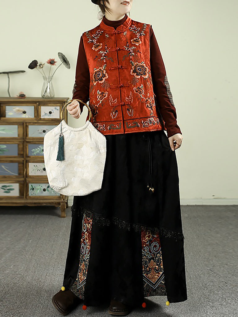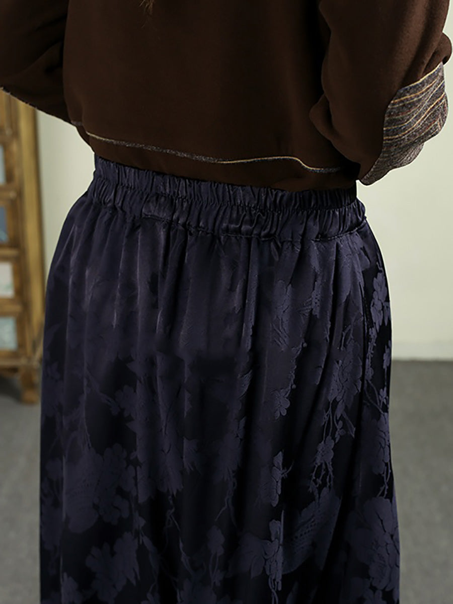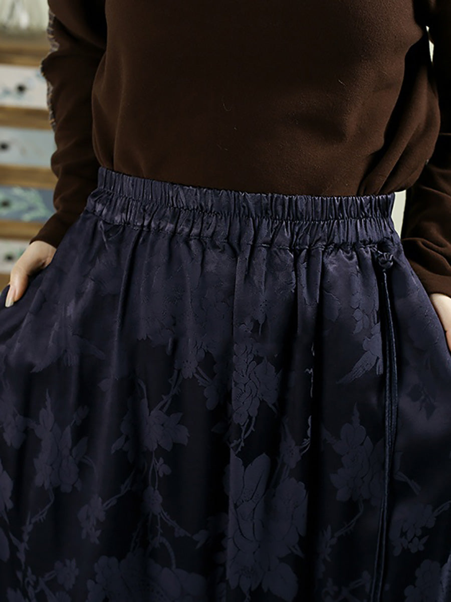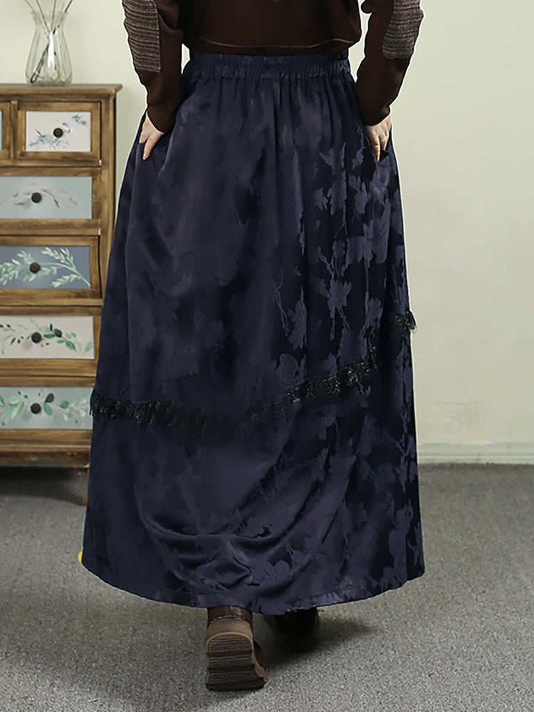 Women Autumn Retro Embroidery Jacquard Tassel A-Shape Skirt