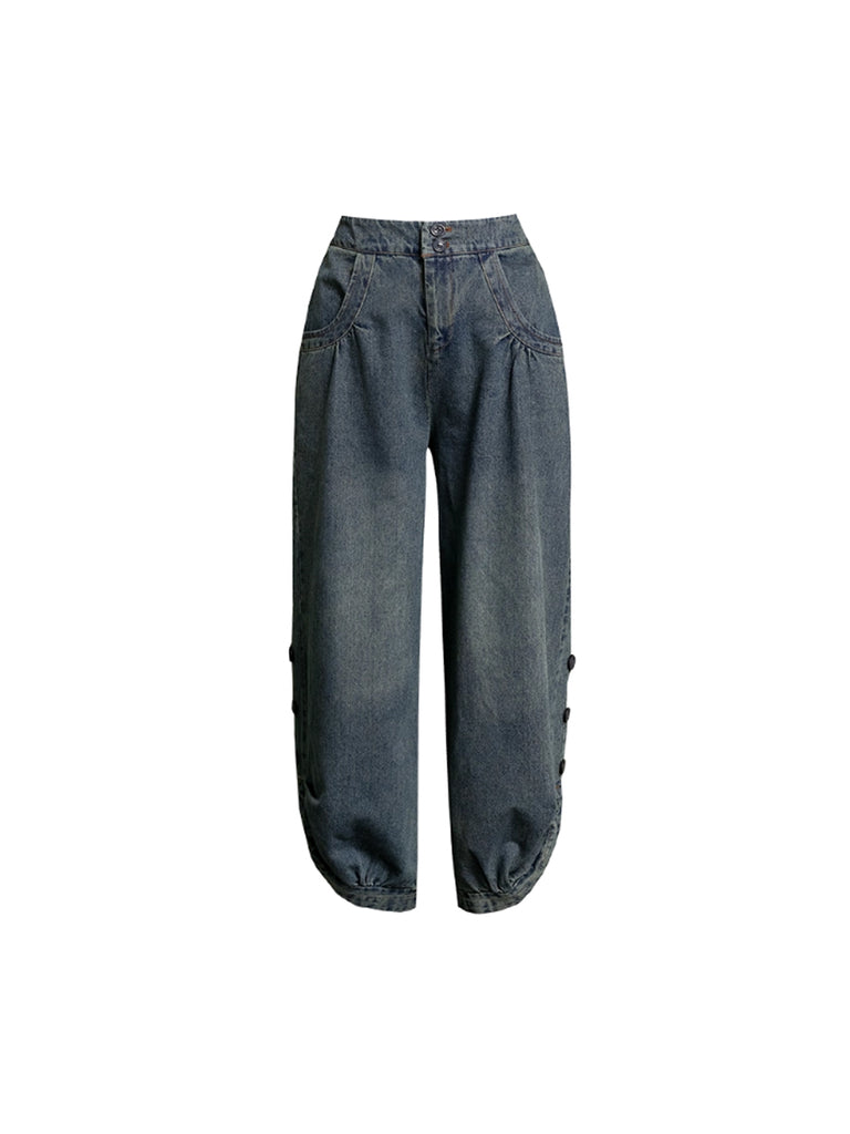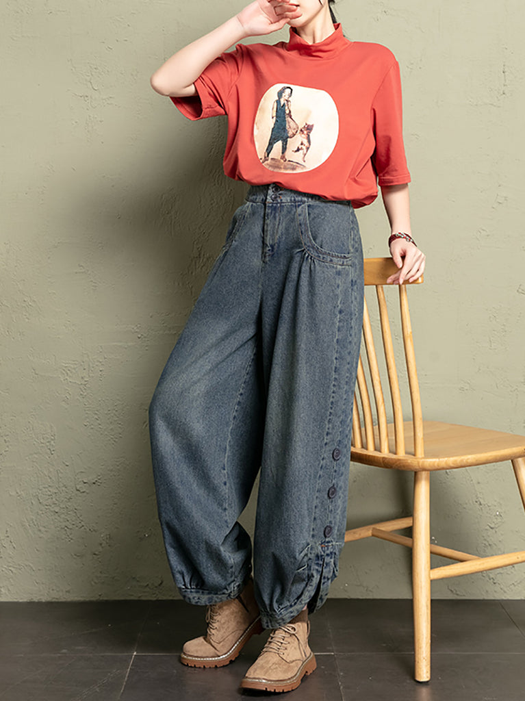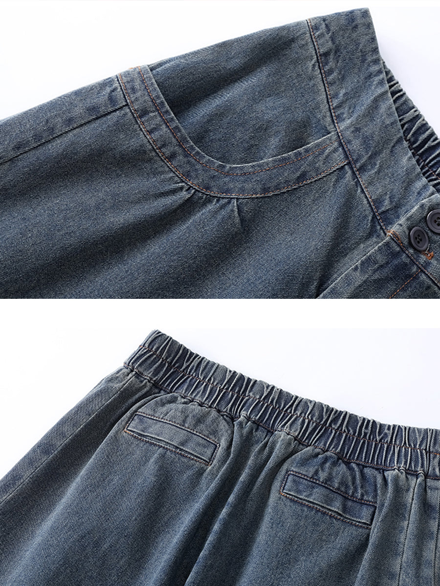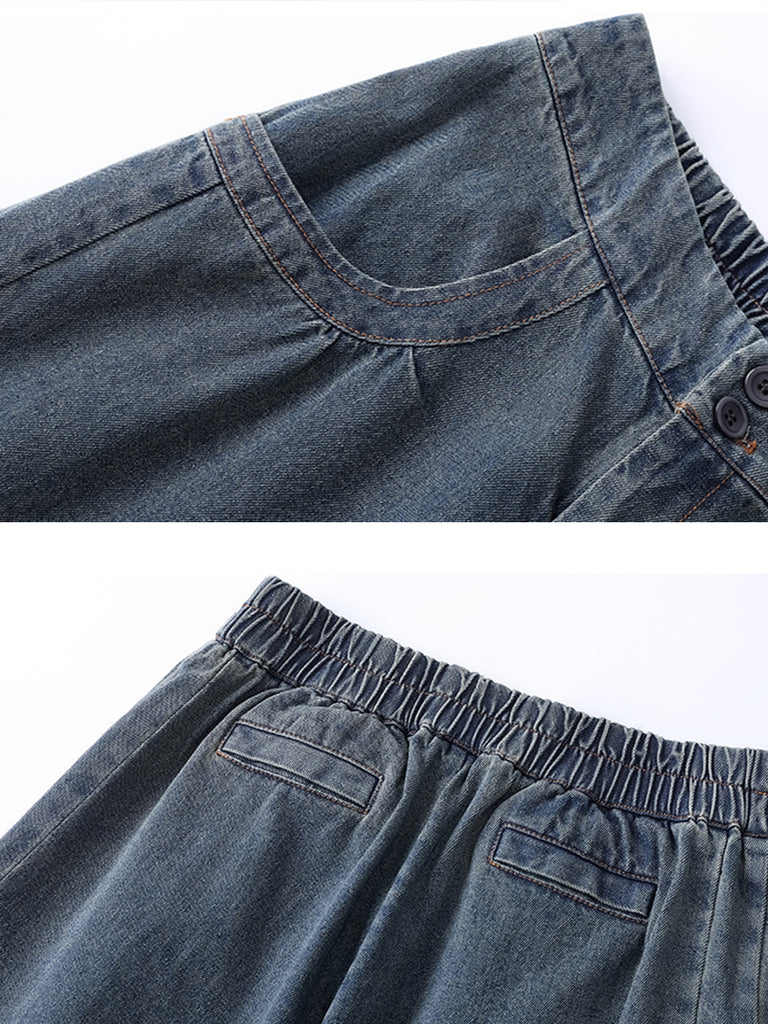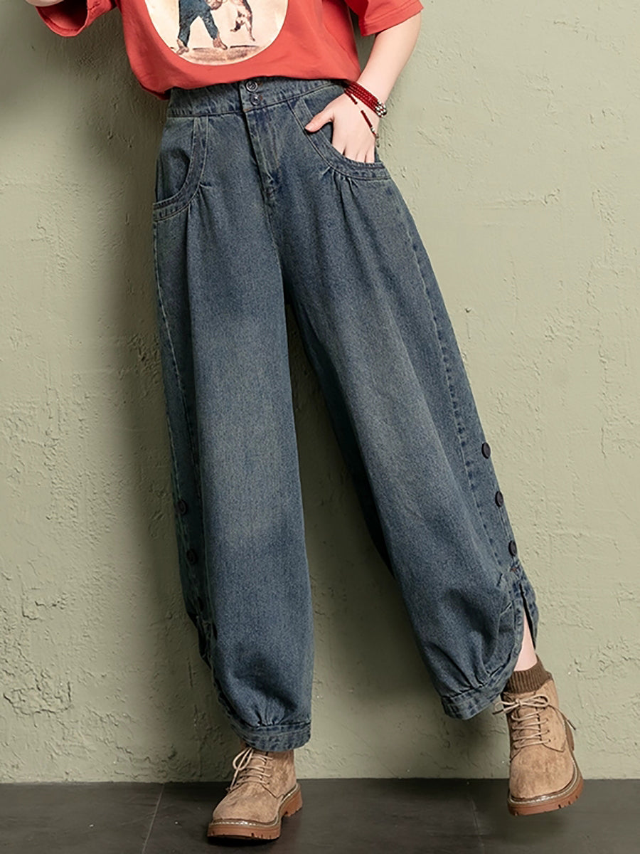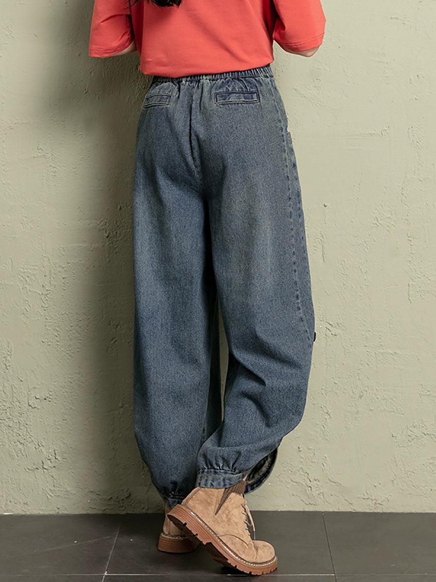 Women Autumn Casual Pure Color Denim Bloomers