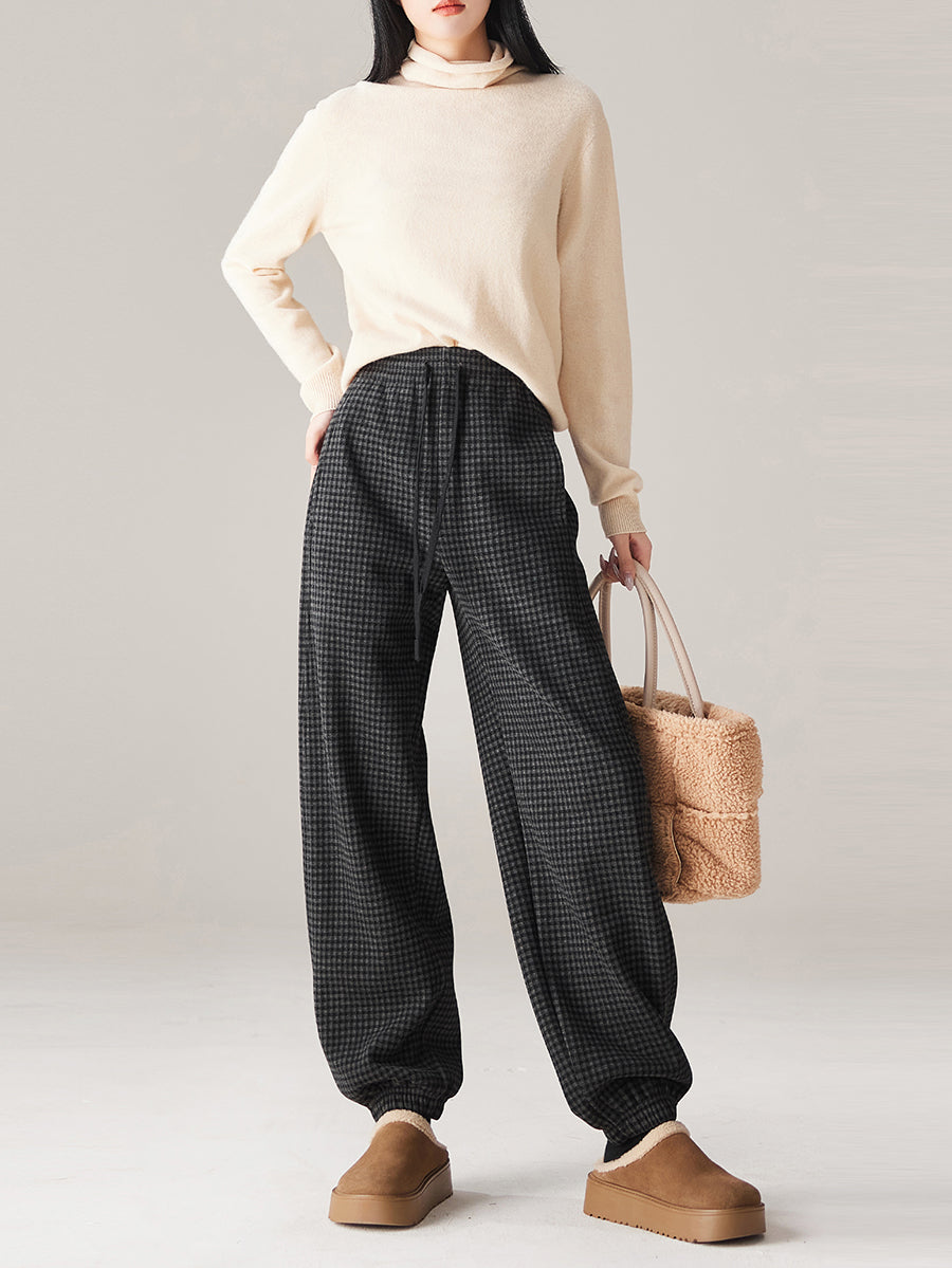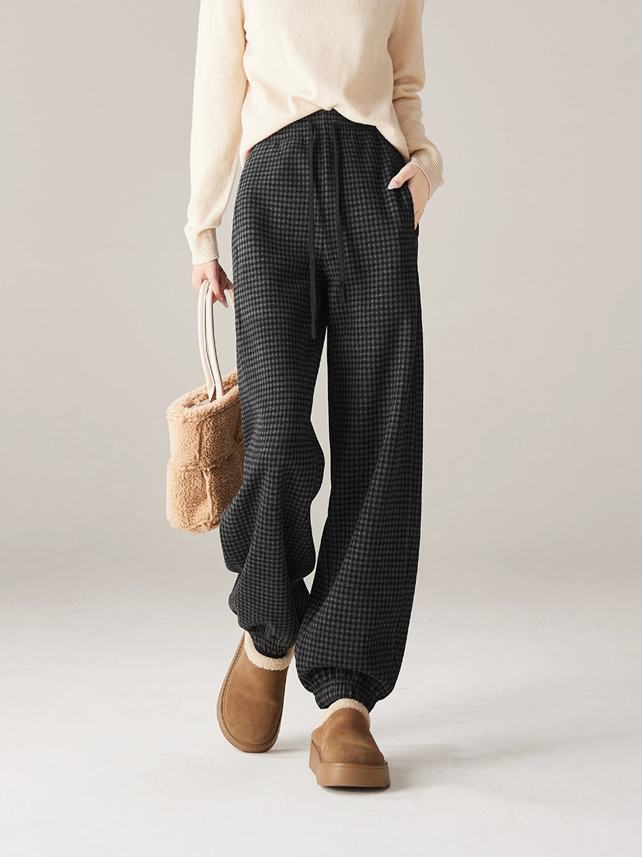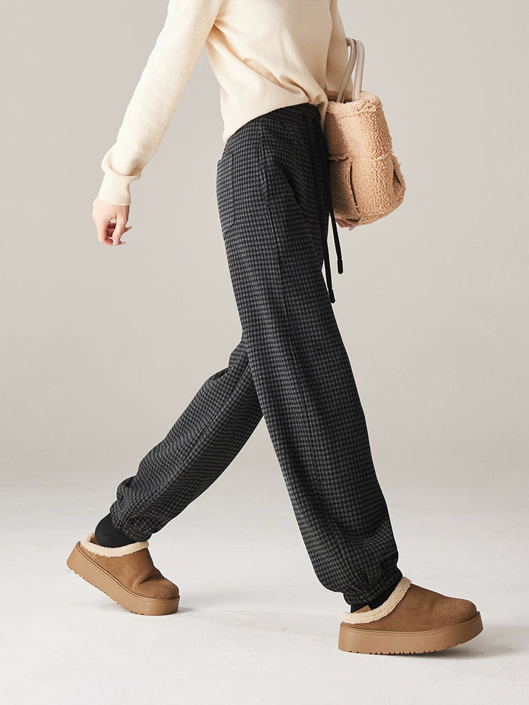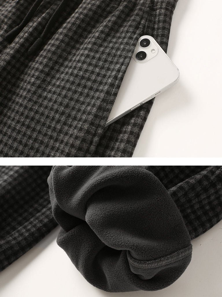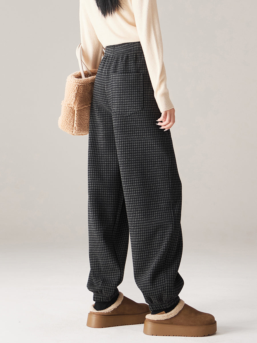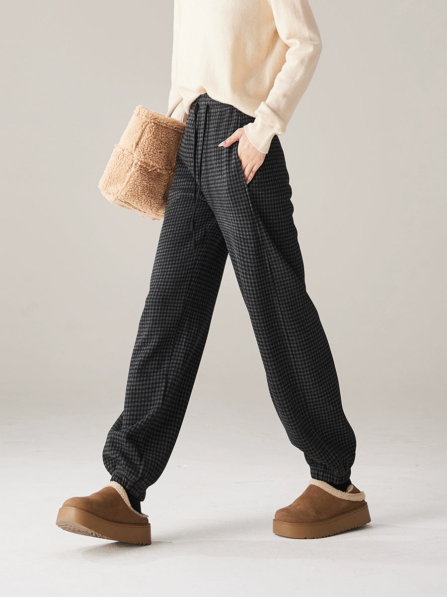 Women Winter Casual Plaid Fleece-lined Tight-fitting Pants