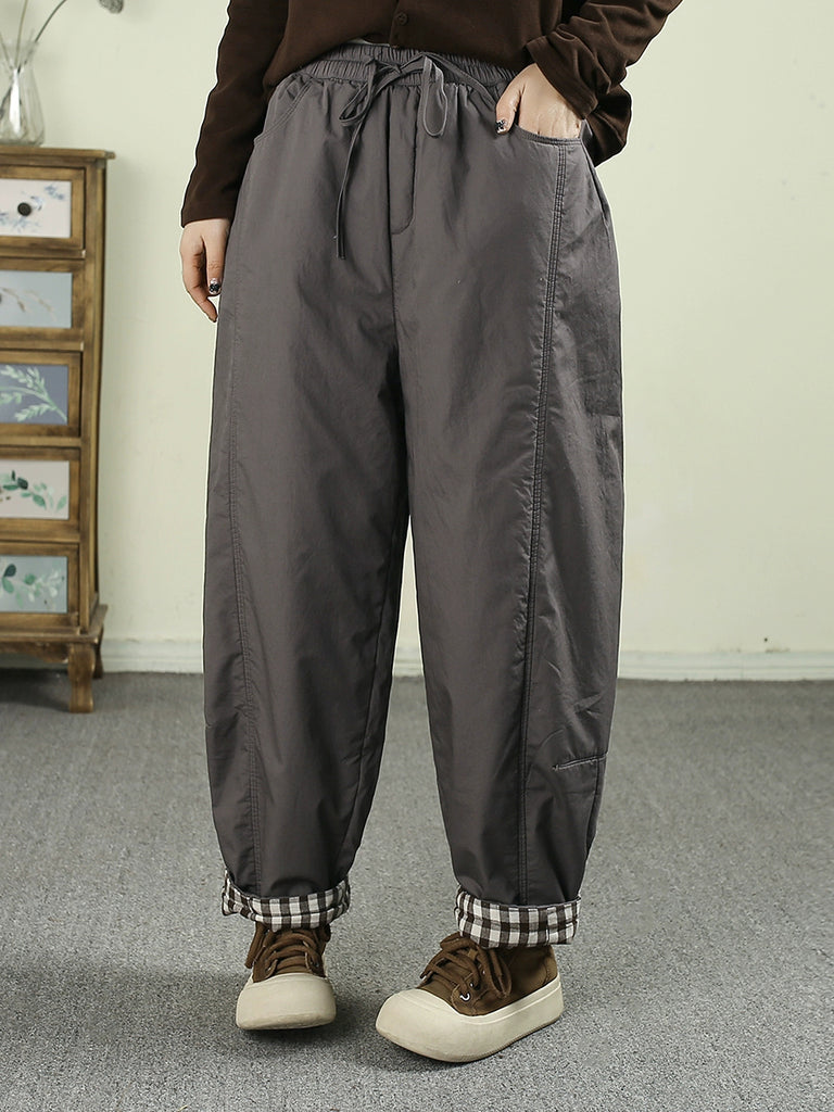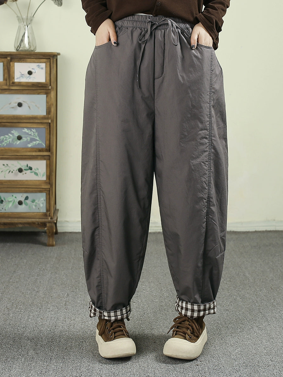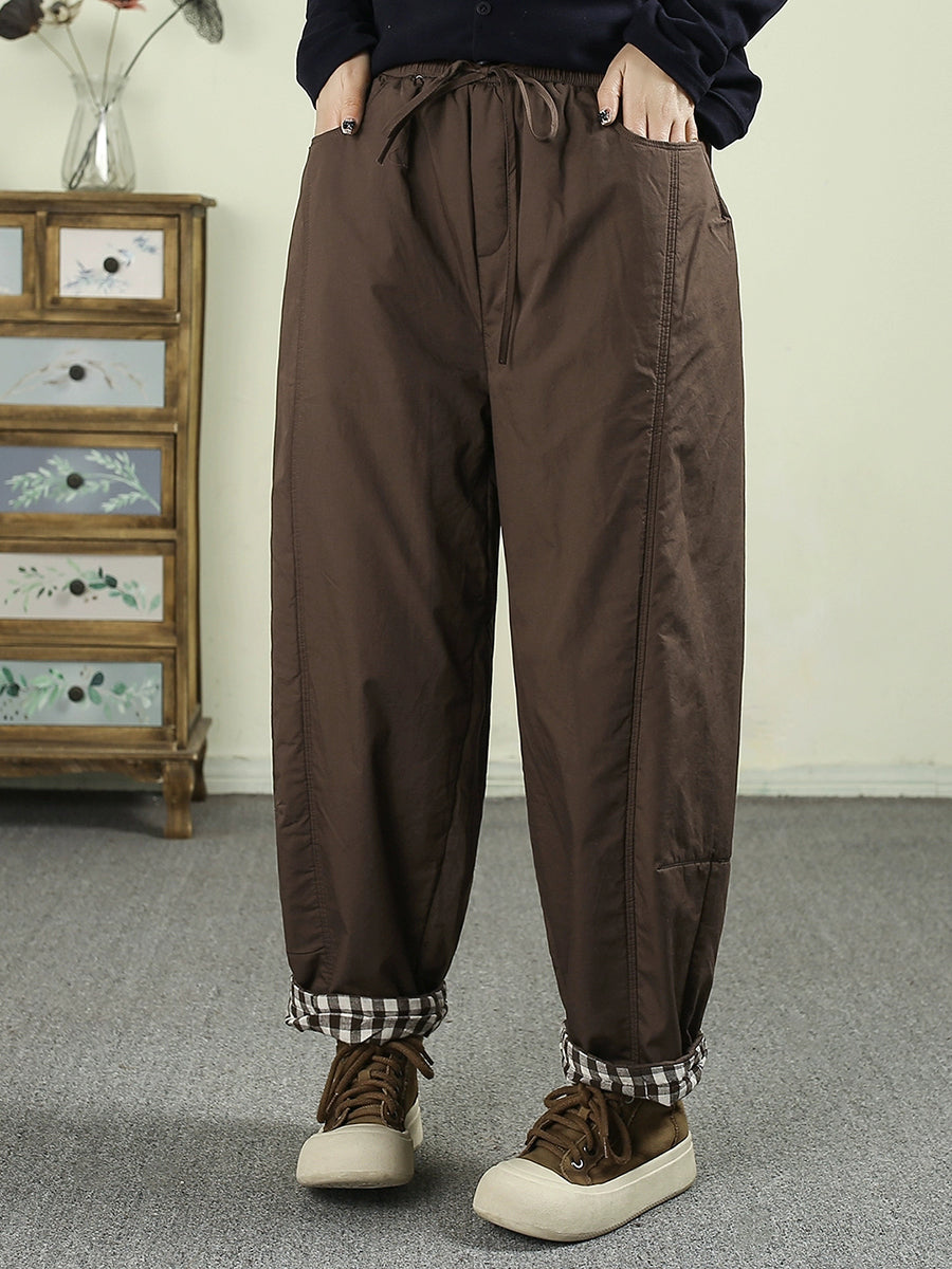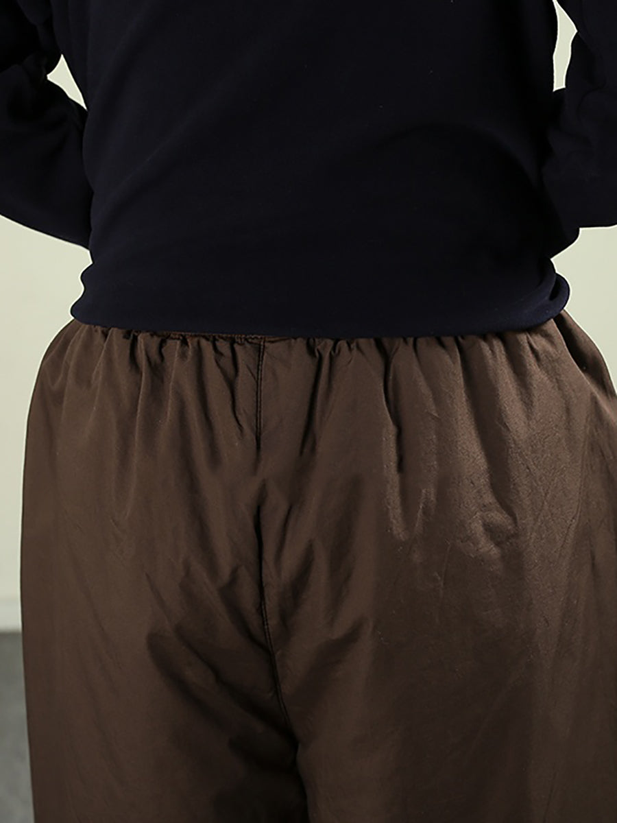 Women Winter Retro Pure Color Padded Harem Pants