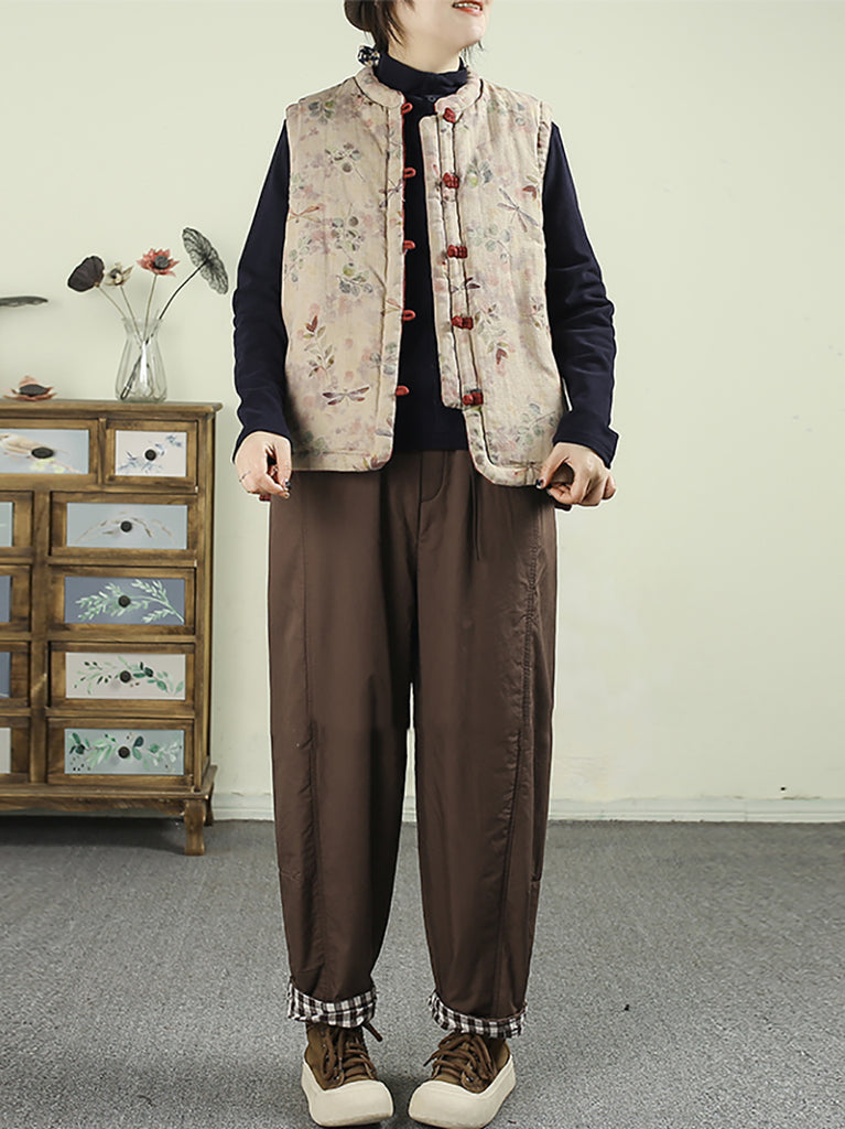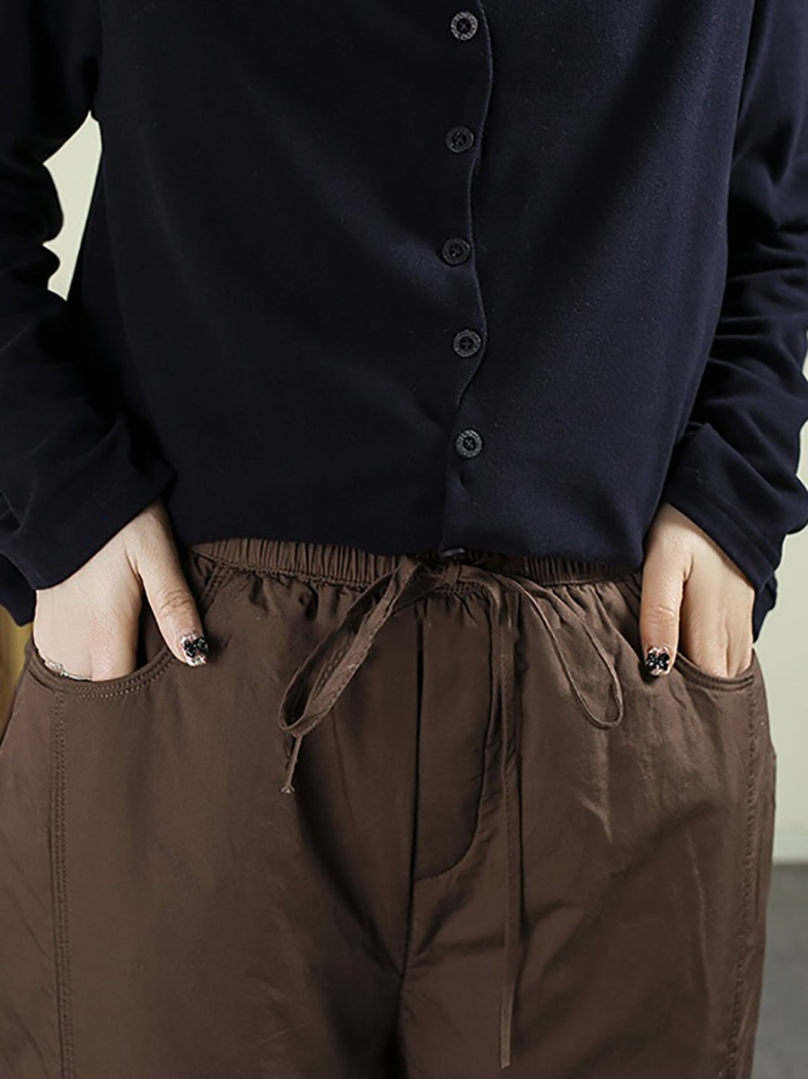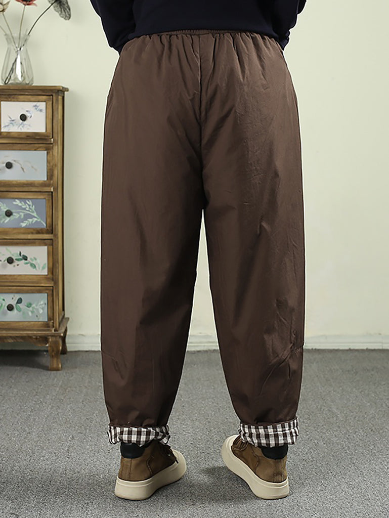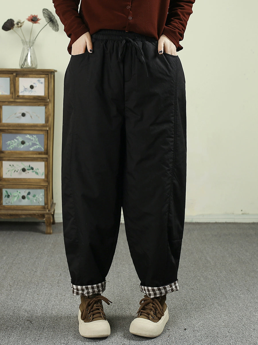 Women Winter Retro Pure Color Padded Harem Pants