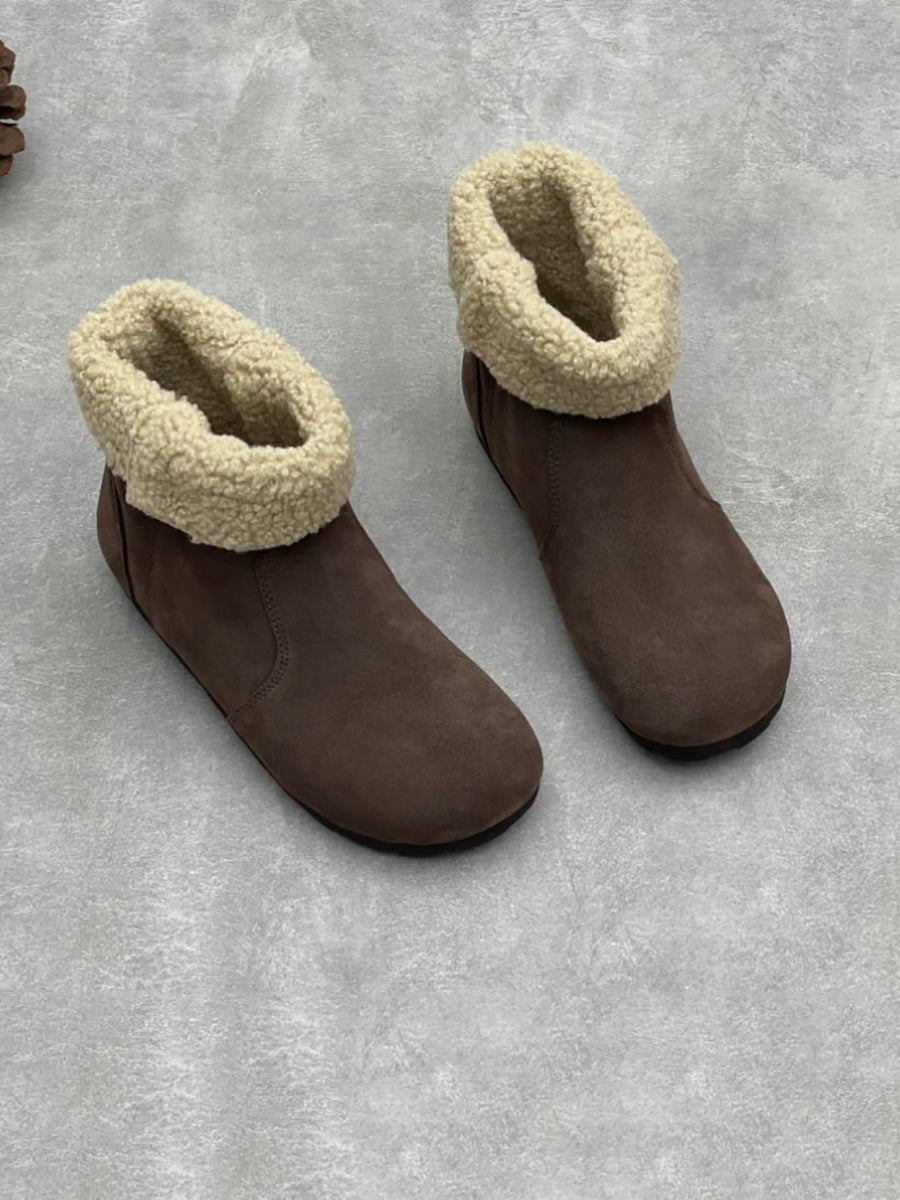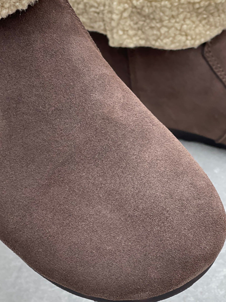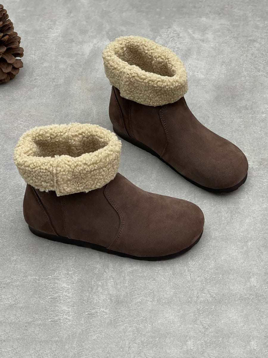 Women Winter Genuine Leather Fleece-lined Ankle Boots