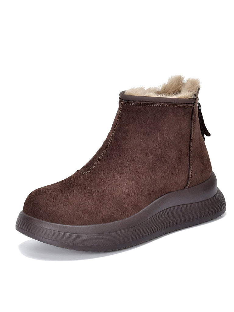 Women Winter Genuine Leather Fleece-lined Chelsea Boots