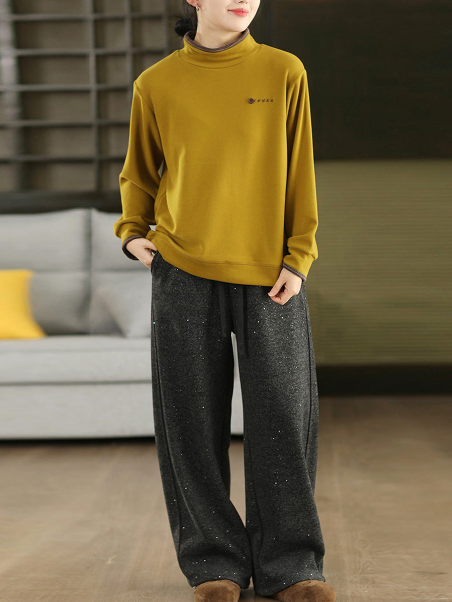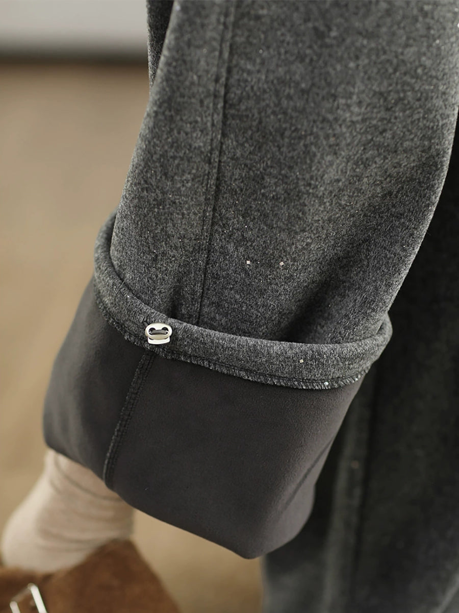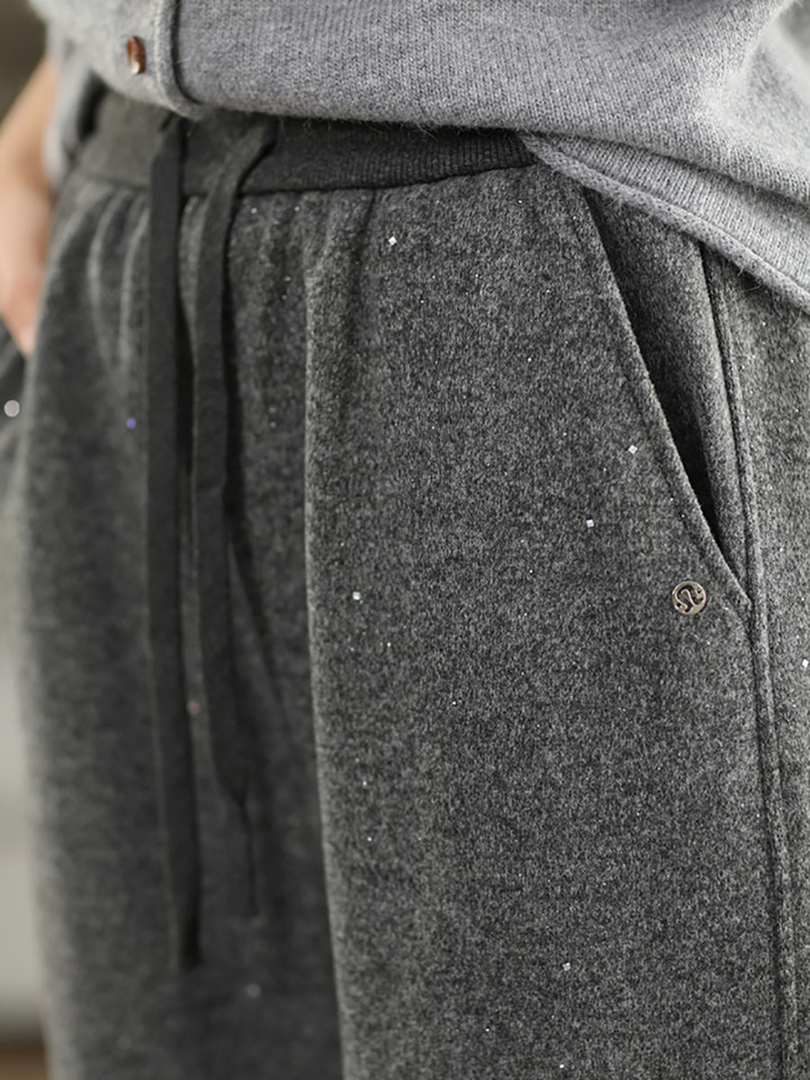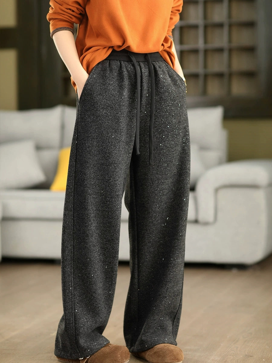 Women Winter Casual Pure Color Fleece-lined Straight Pants