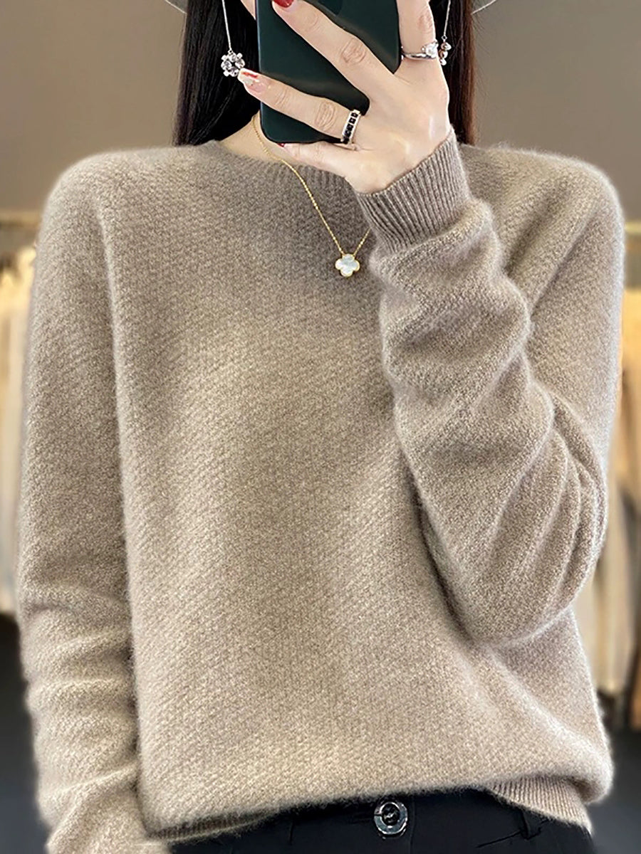 Women Autumn Artsy Pure Color Wool O-Neck Sweater