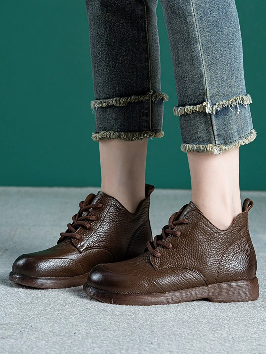 Women Casual Pure Color Genuine Leather Ankle Boots