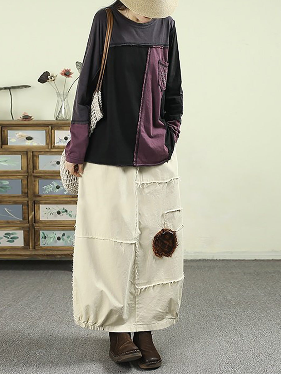 Women Spring Worn Patch 100%Cotton Bud Skirt