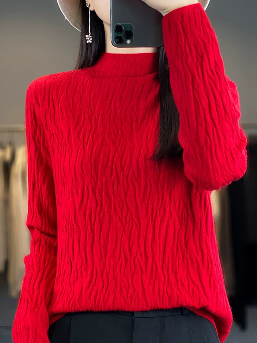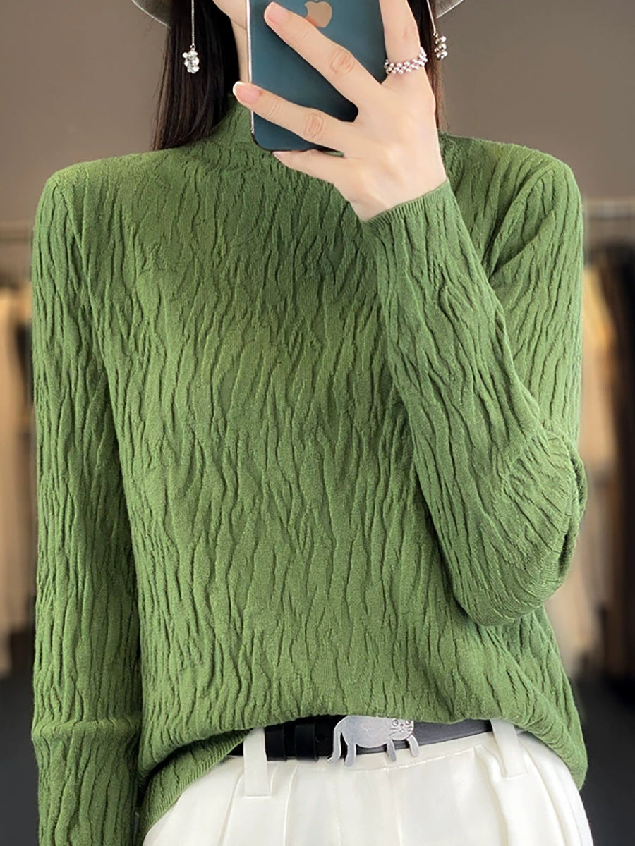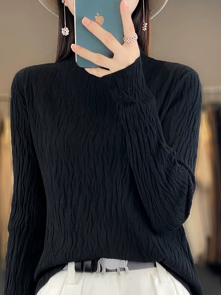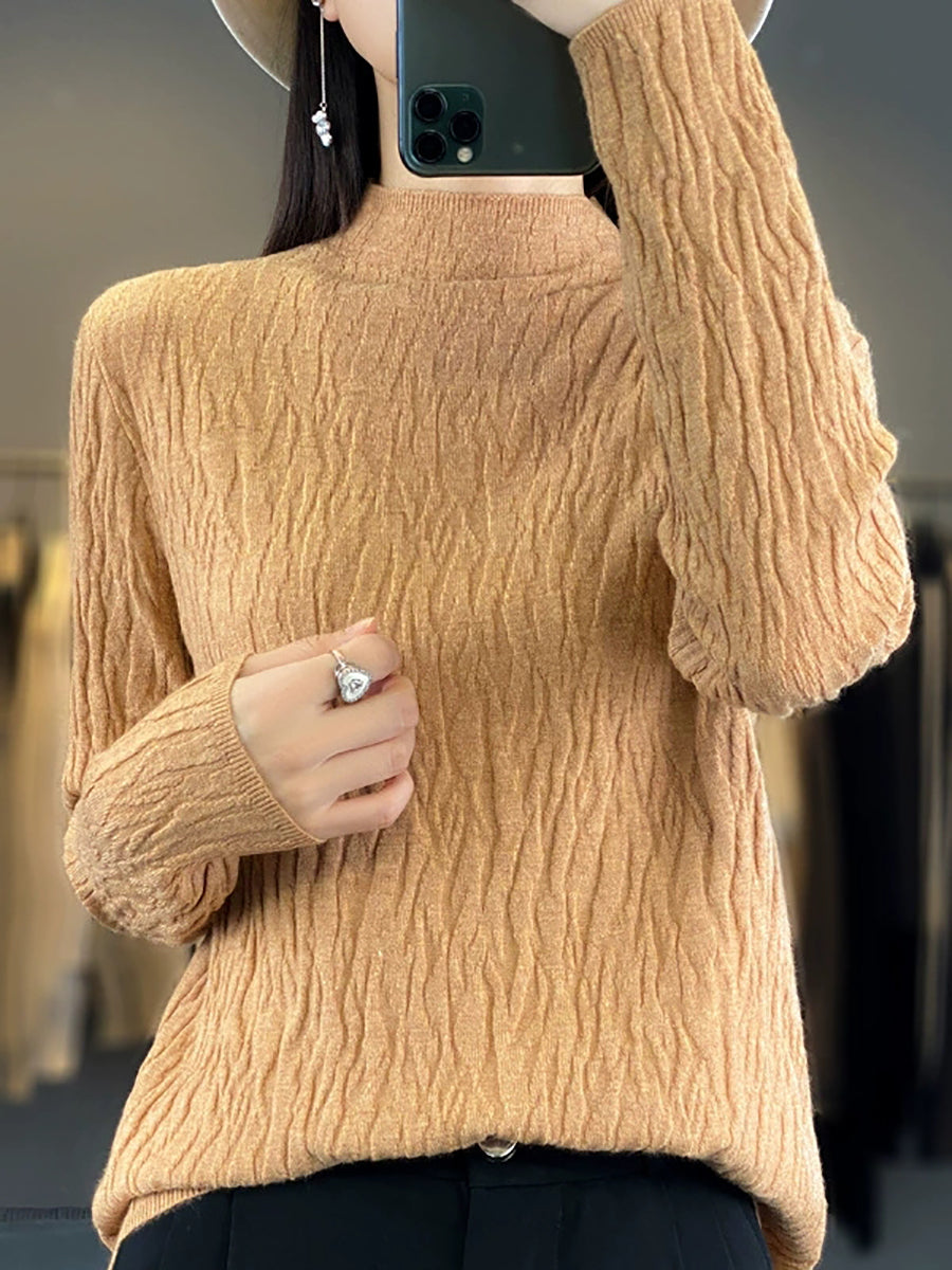 Women Spring Casual Pure Color Half-Turtleneck Sweater