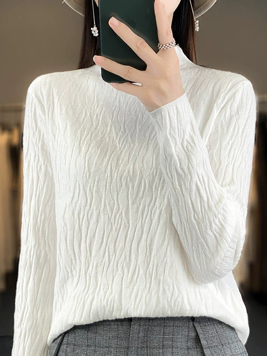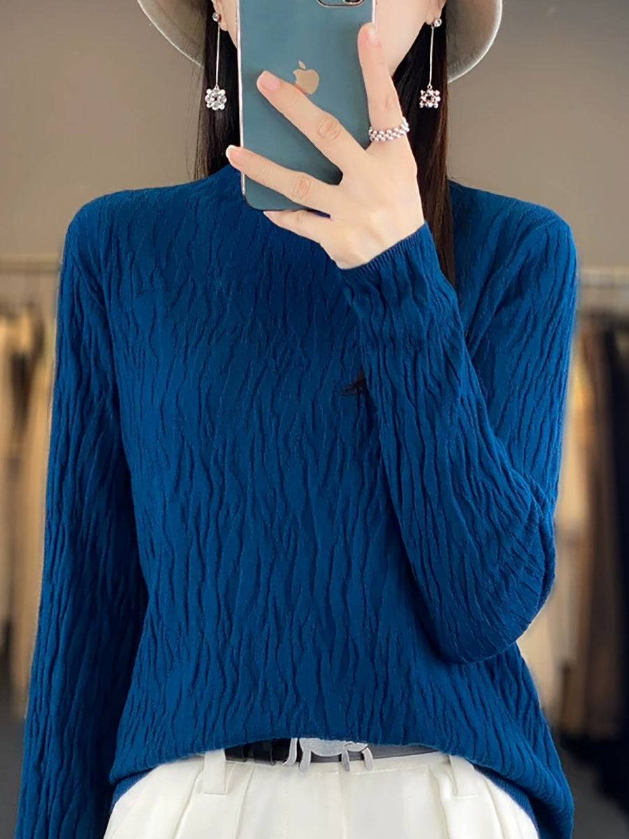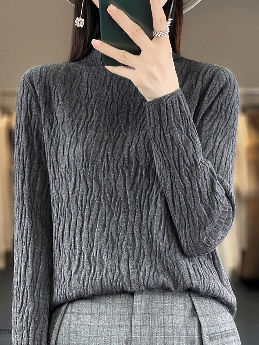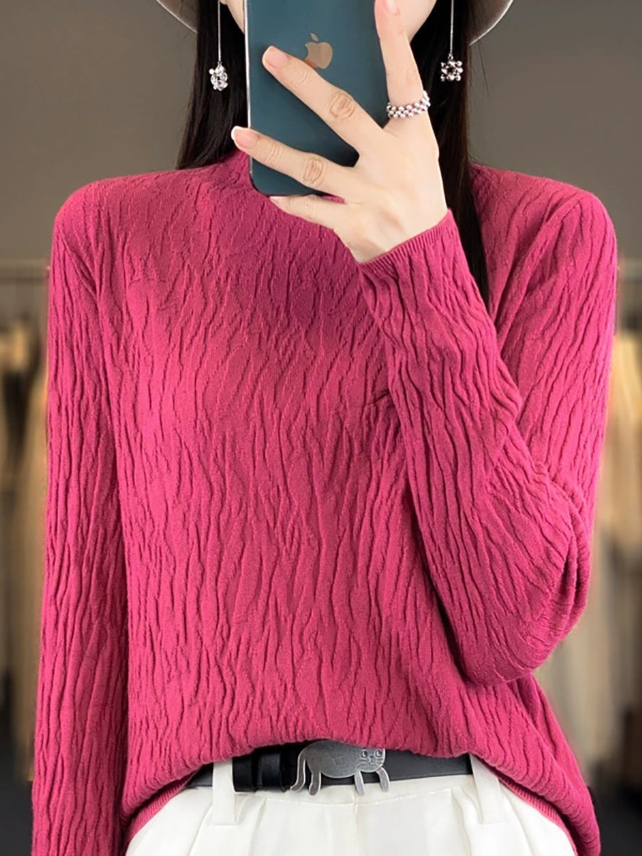 Women Spring Casual Pure Color Half-Turtleneck Sweater