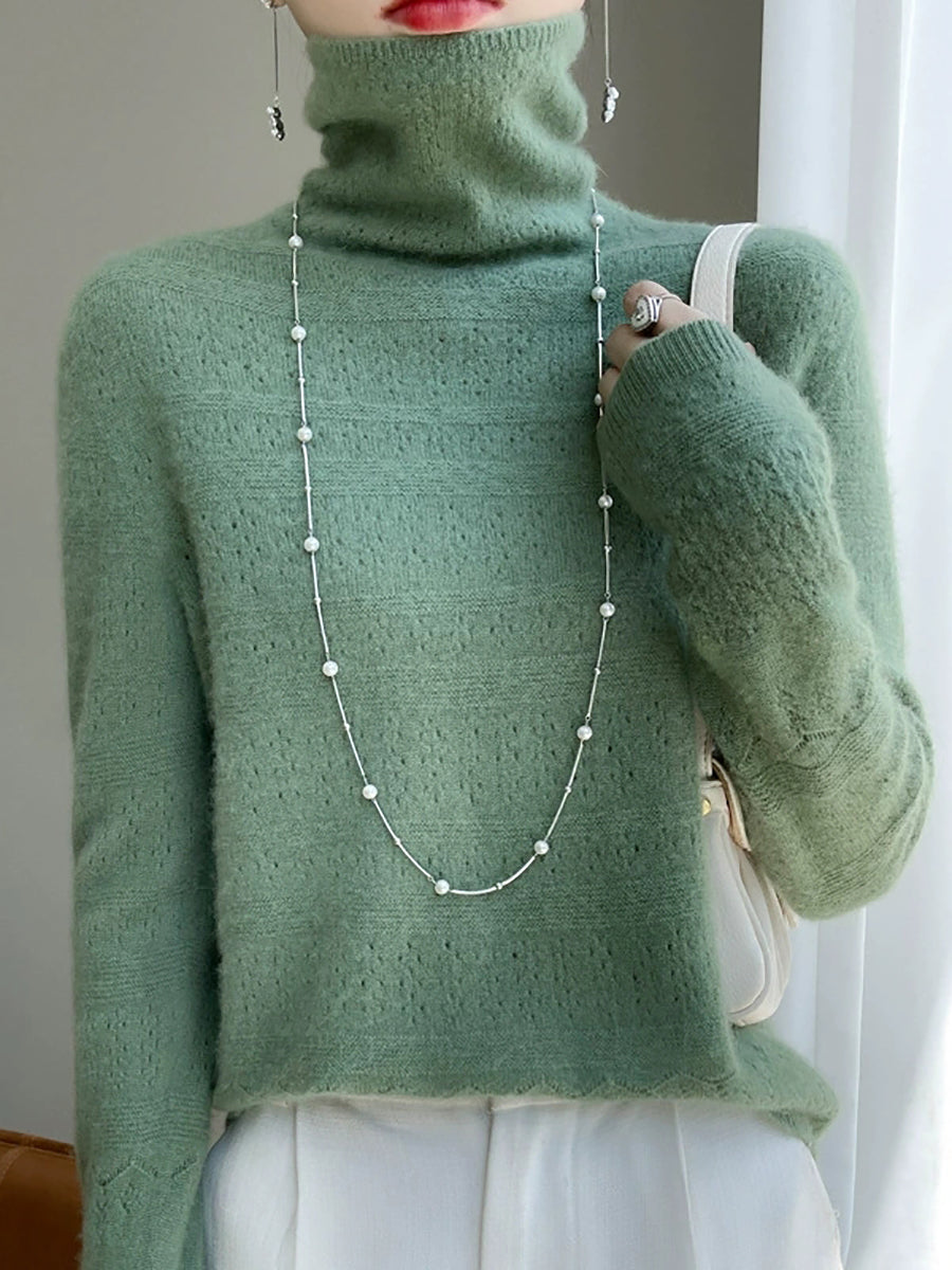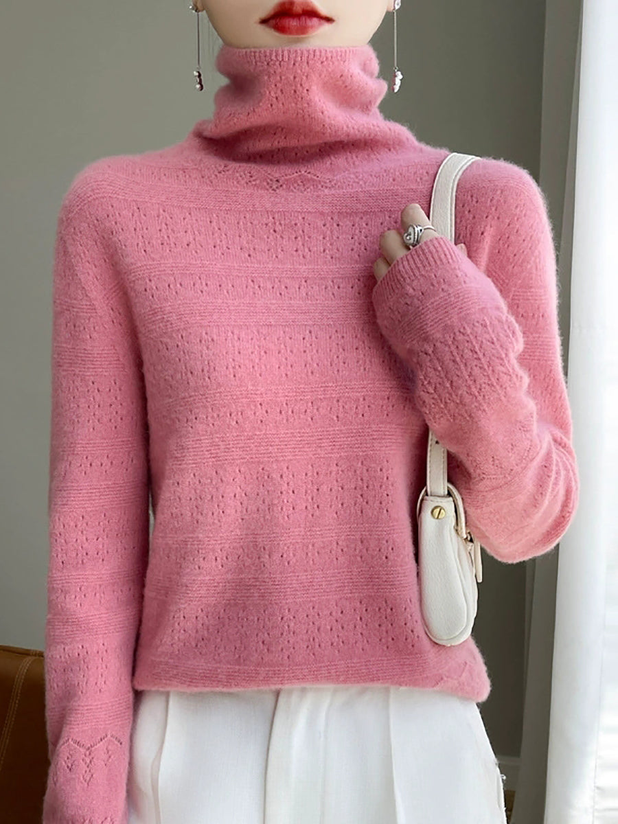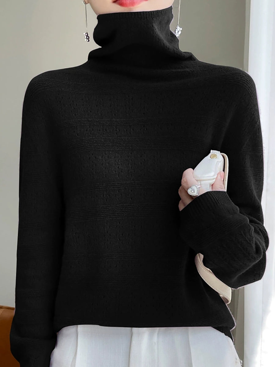 Women Spring Casual Pure Color Turtleneck Sweater