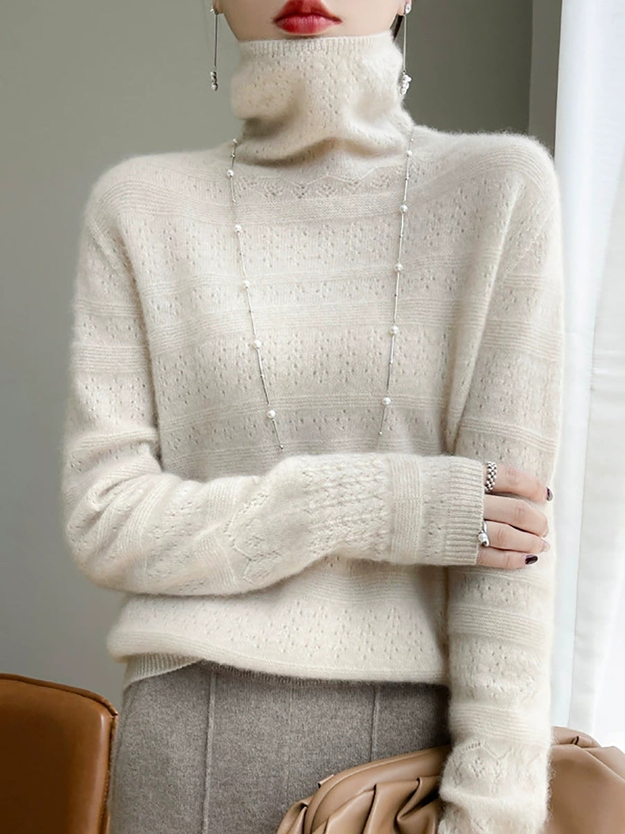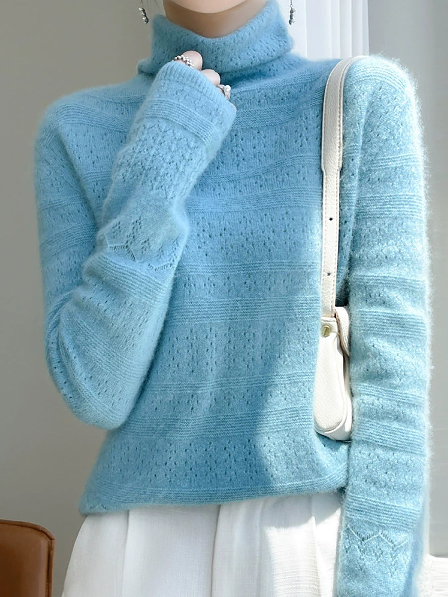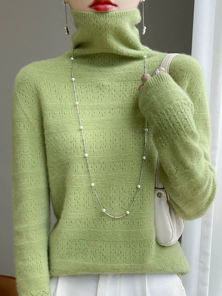Women Spring Casual Pure Color Turtleneck Sweater