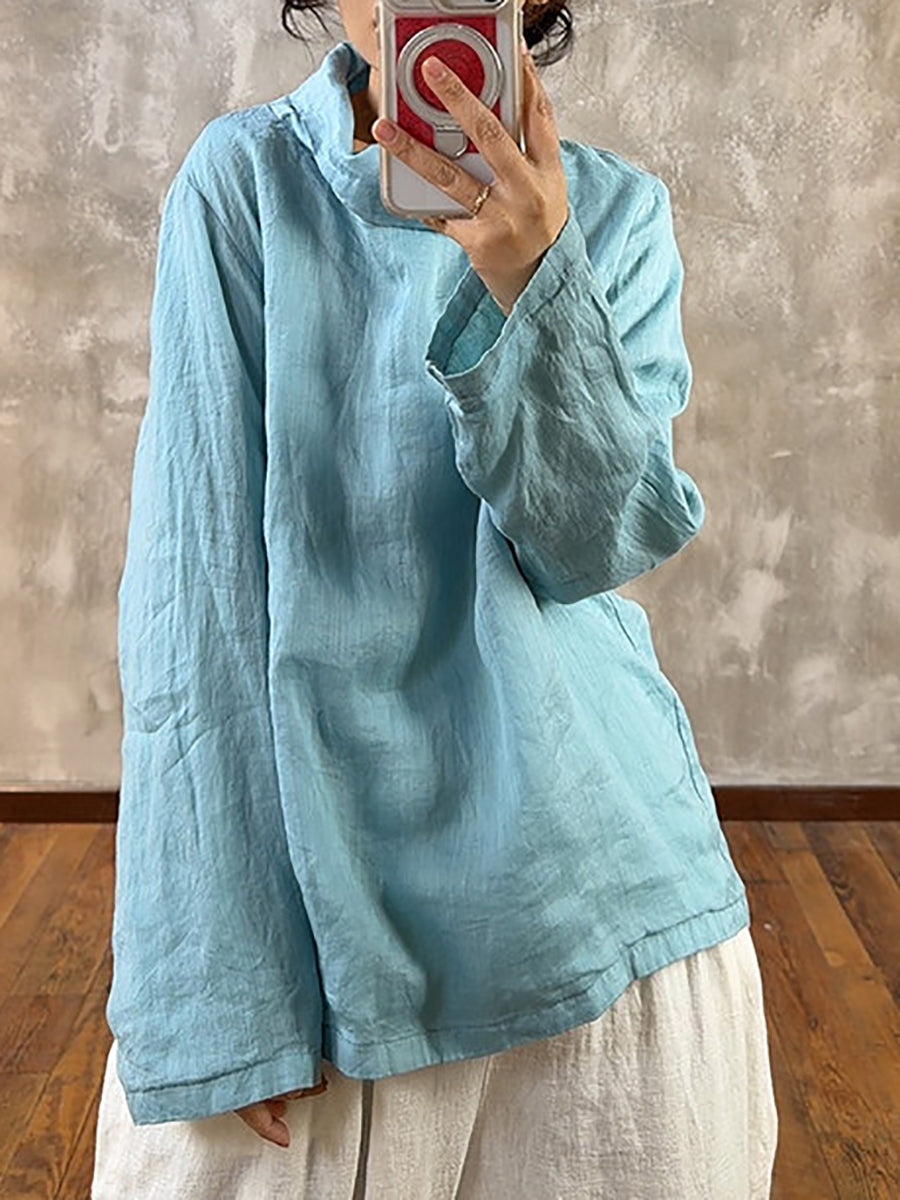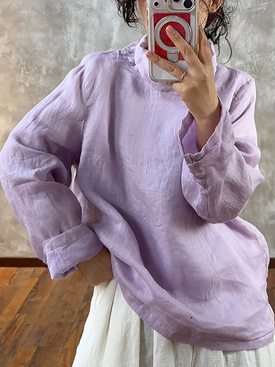 Women Spring Pure Color Heaps Collar Blouse