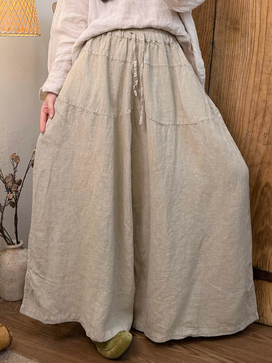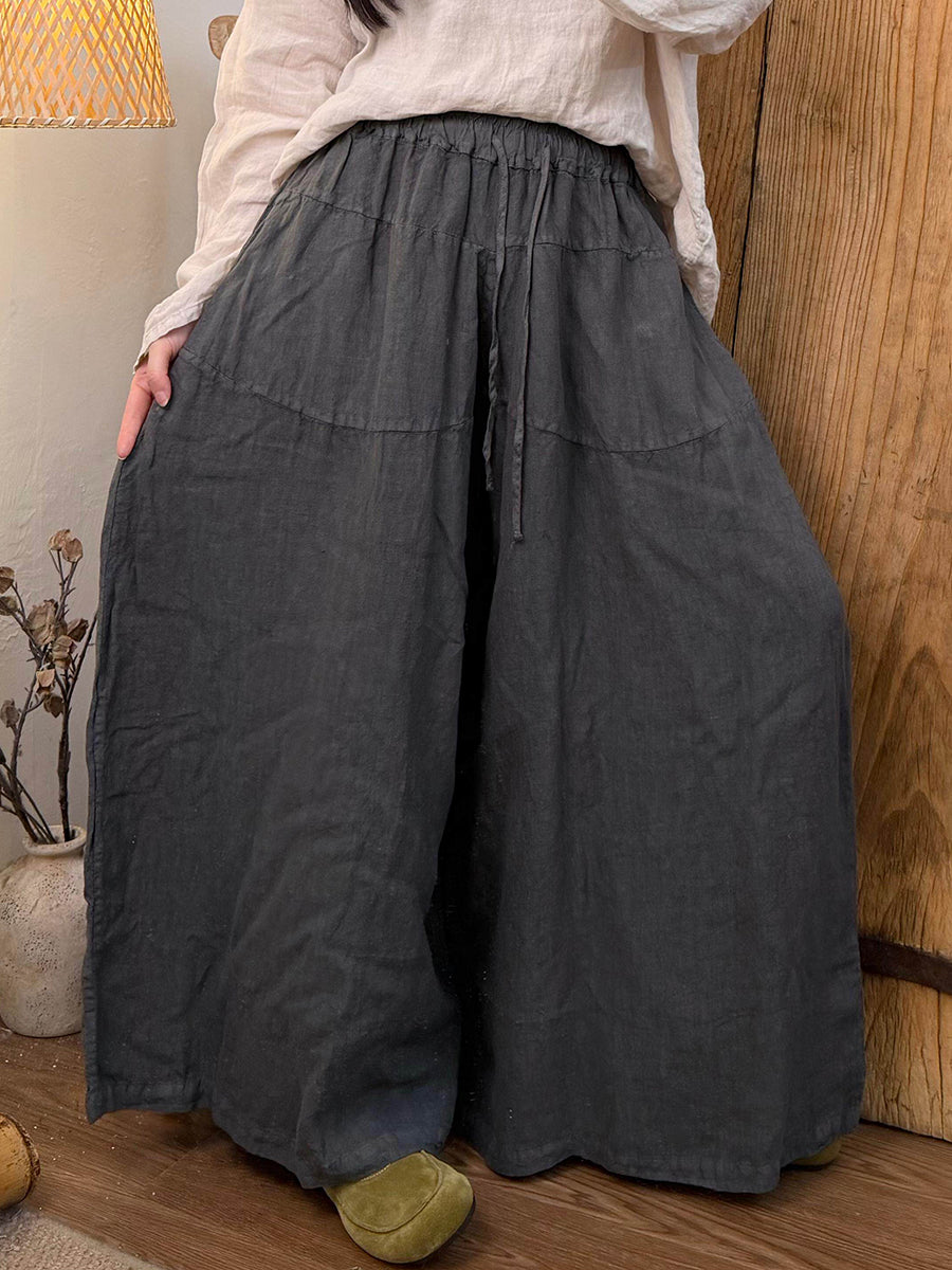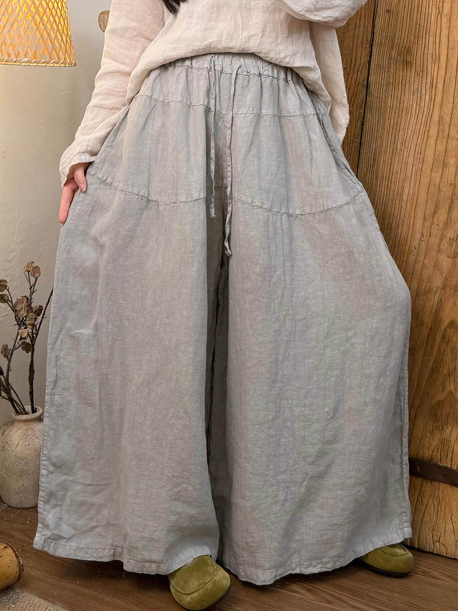 Women Spring Pure Color Linen Wide-leg Pants